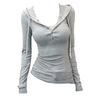 显瘦T恤打底衫 大码 修身 新款 胖妹妹韩系辣妹风简约连帽上衣女秋季