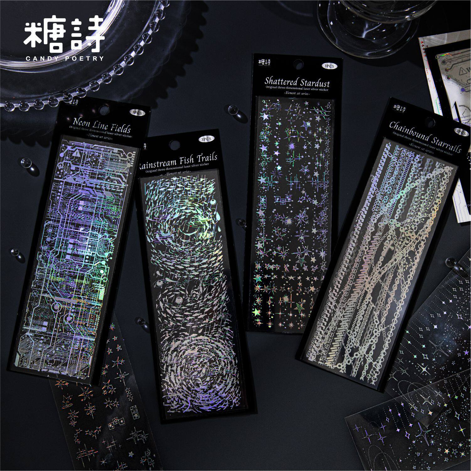 素集系列 元 简约ins风手帐咕卡贴纸 PET立体镭射银平张贴纸 糖诗