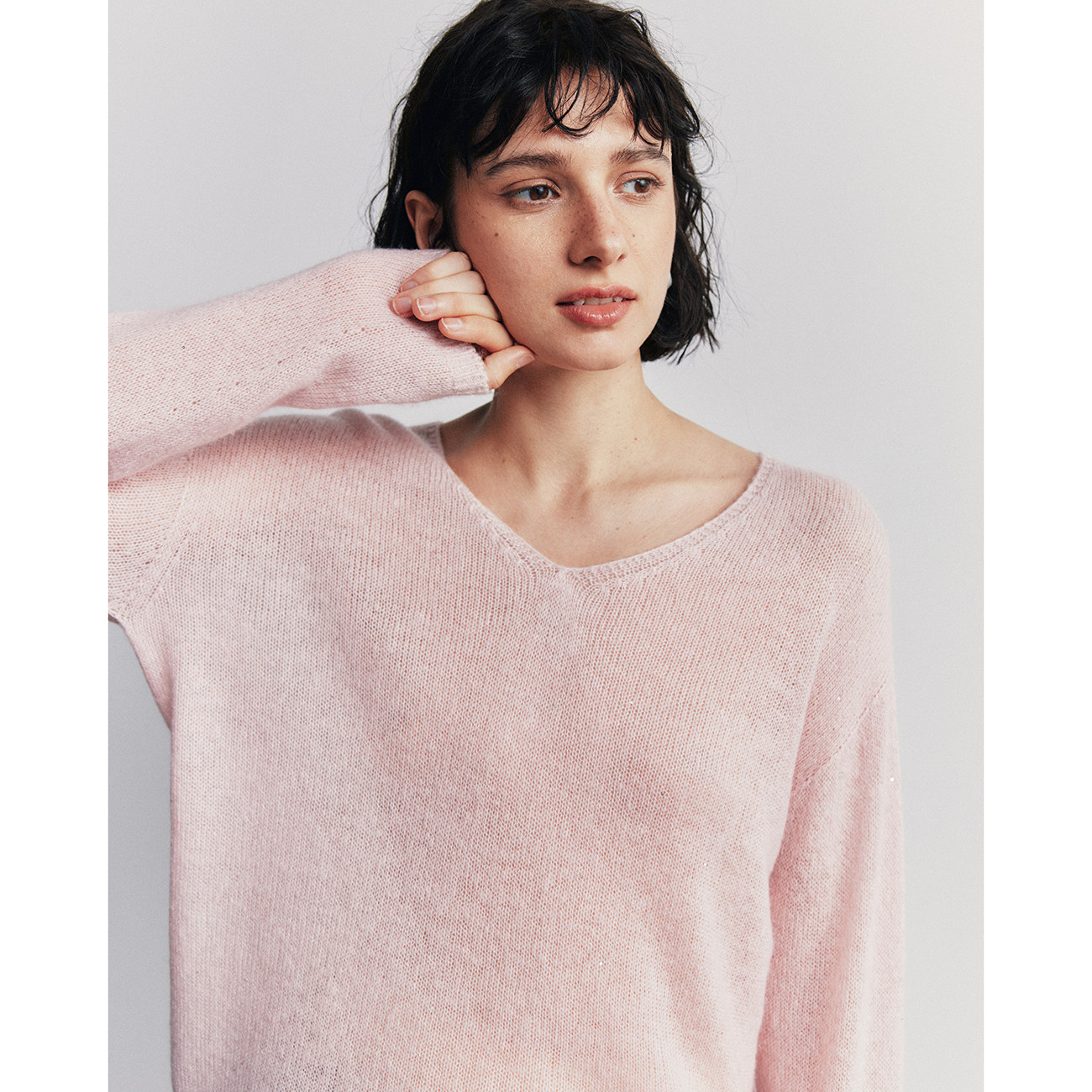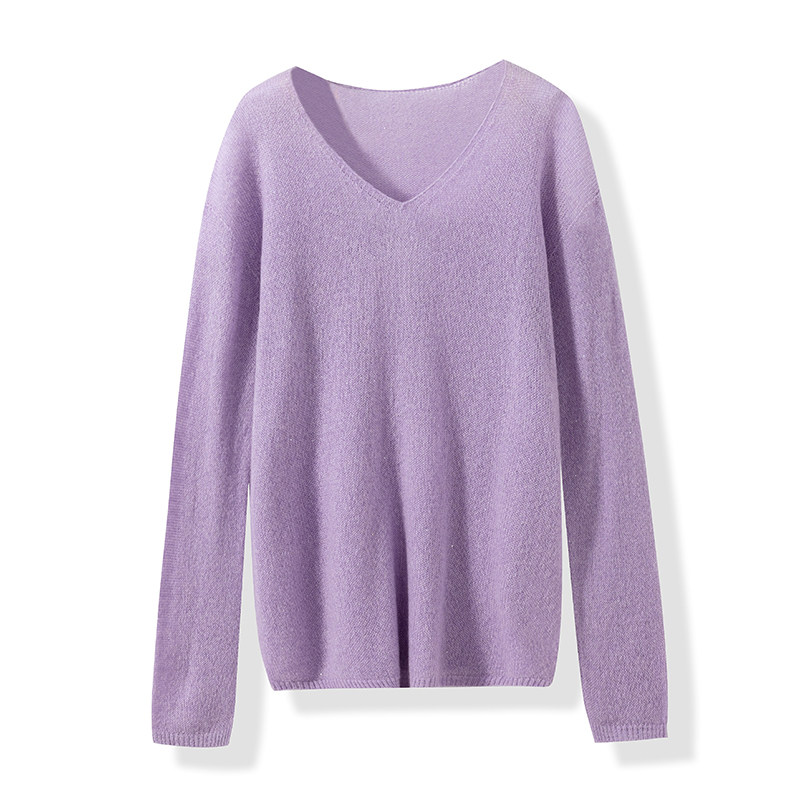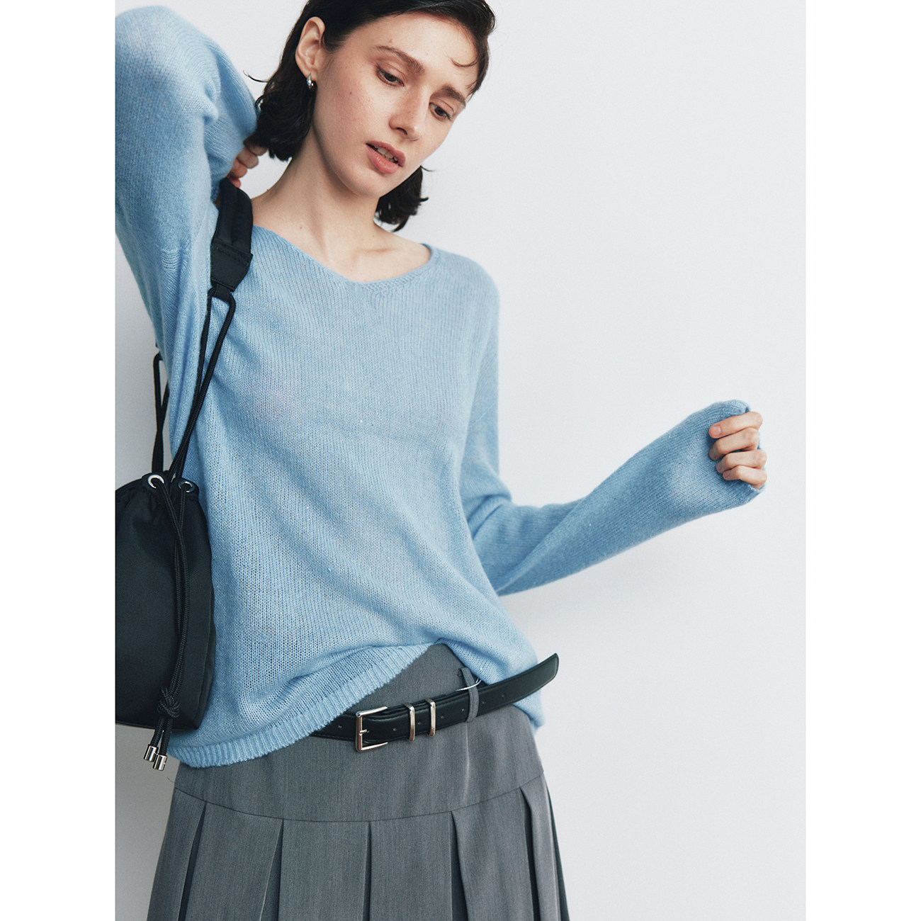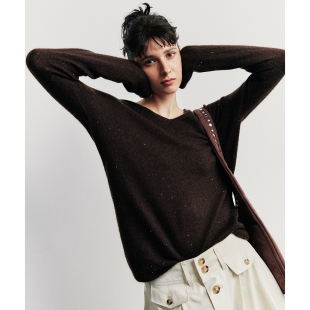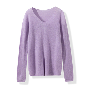 简约通勤百搭宽松V领针织衫 绵羊毛山羊绒 毛衣女 纸片人特效