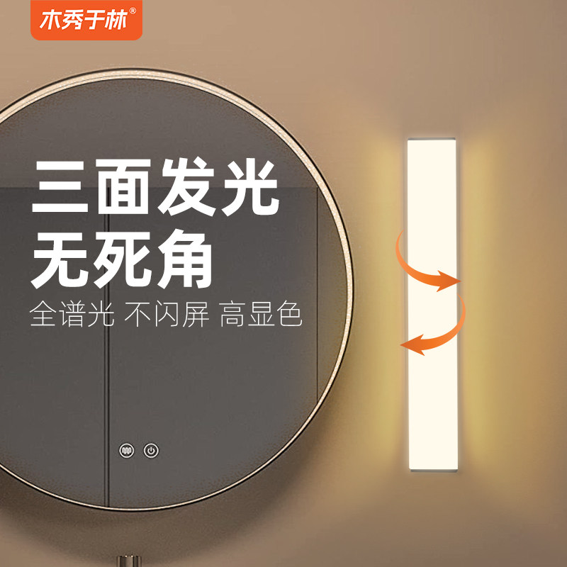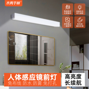 充电镜前灯防水人体感应卫生间洗脸盆免打孔化妆补光免接线免开关