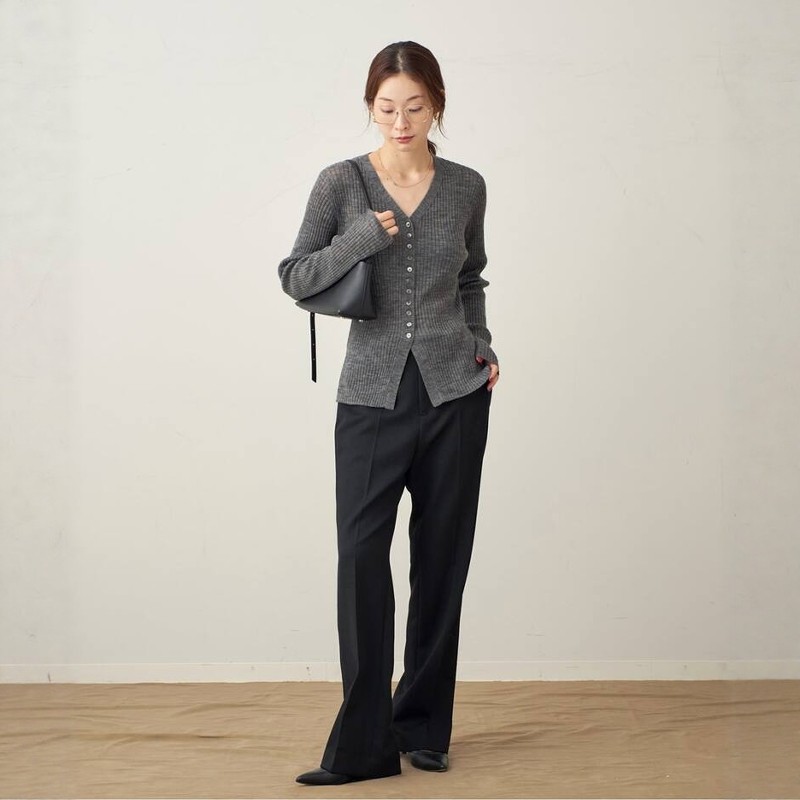 Button Rib Cardigan 25AW 日代 羊驼毛混纺罗纹纽扣开衫 Plage