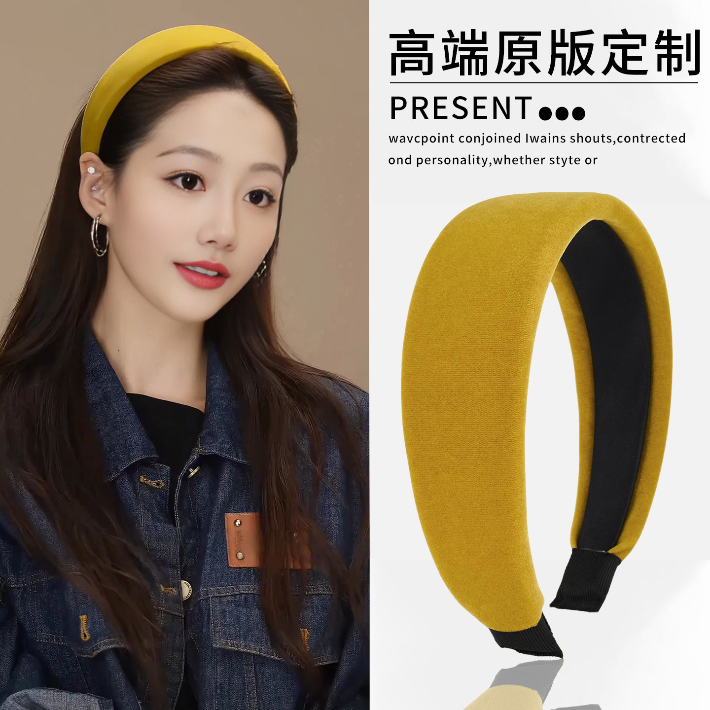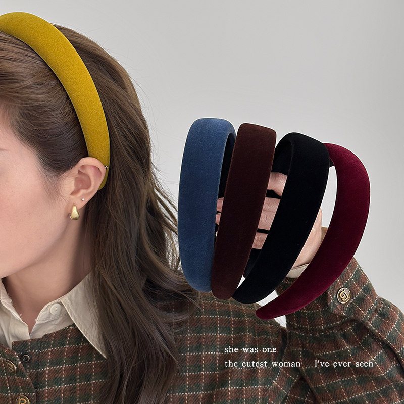 高圆圆同款 秋冬巨显白高颅顶头箍发卡头饰 南瓜橘丝绒发箍女2025款