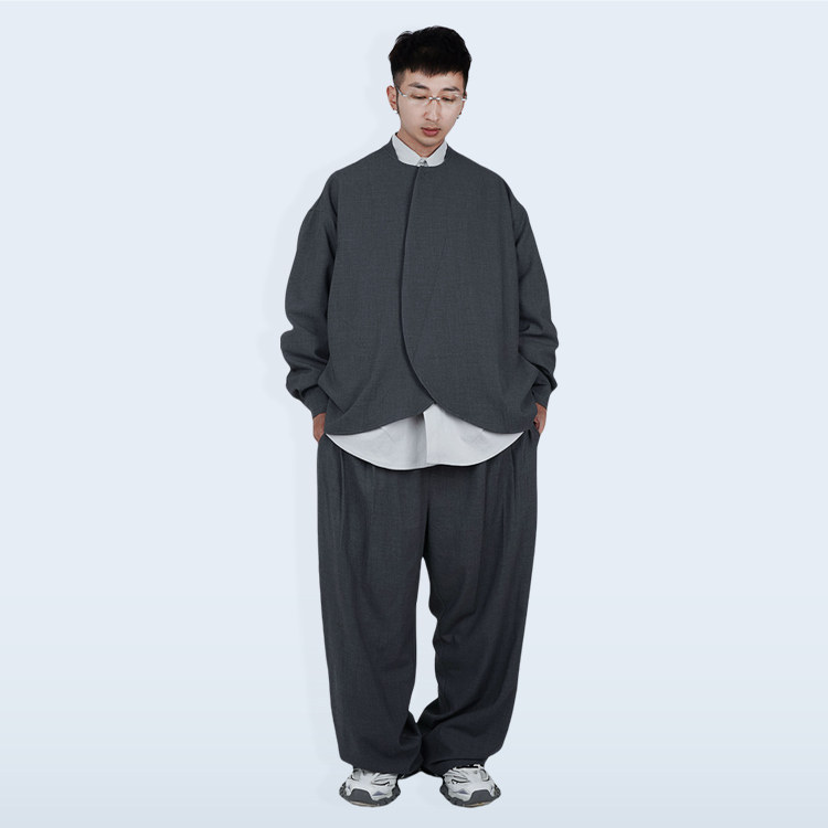 Vavu纯棉萨克斯蓝碳素水洗长袖 贴袋休闲松弛感简约百搭衬衣 衬衫