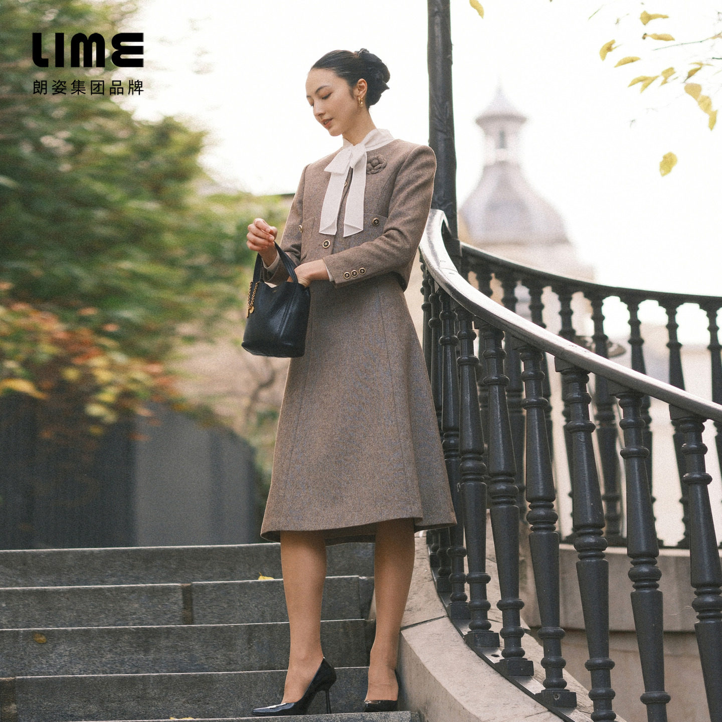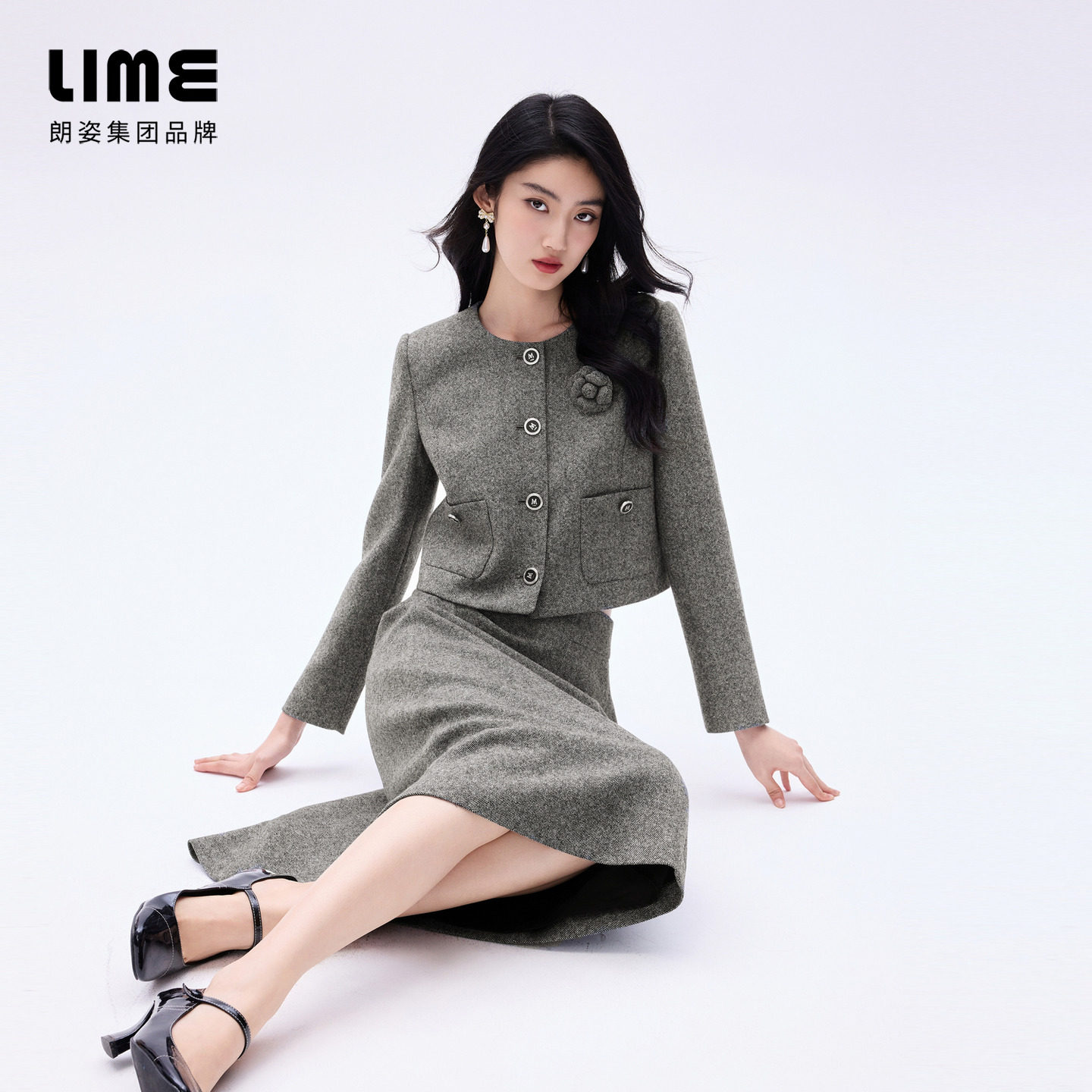 LIME莱茵千金风轻奢羊毛花呢手工胸花半裙套装 朗姿 明星同款