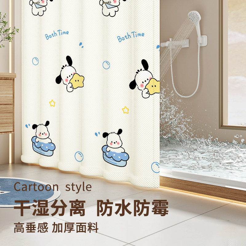 浴室浴帘隔断帘防水布挂帘遮挡帘卫生间洗澡淋浴房门帘伸缩杆防霉