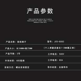 2位接线端子60A大电流电线连接器JX5 6002全铜接线柱电线对接端子