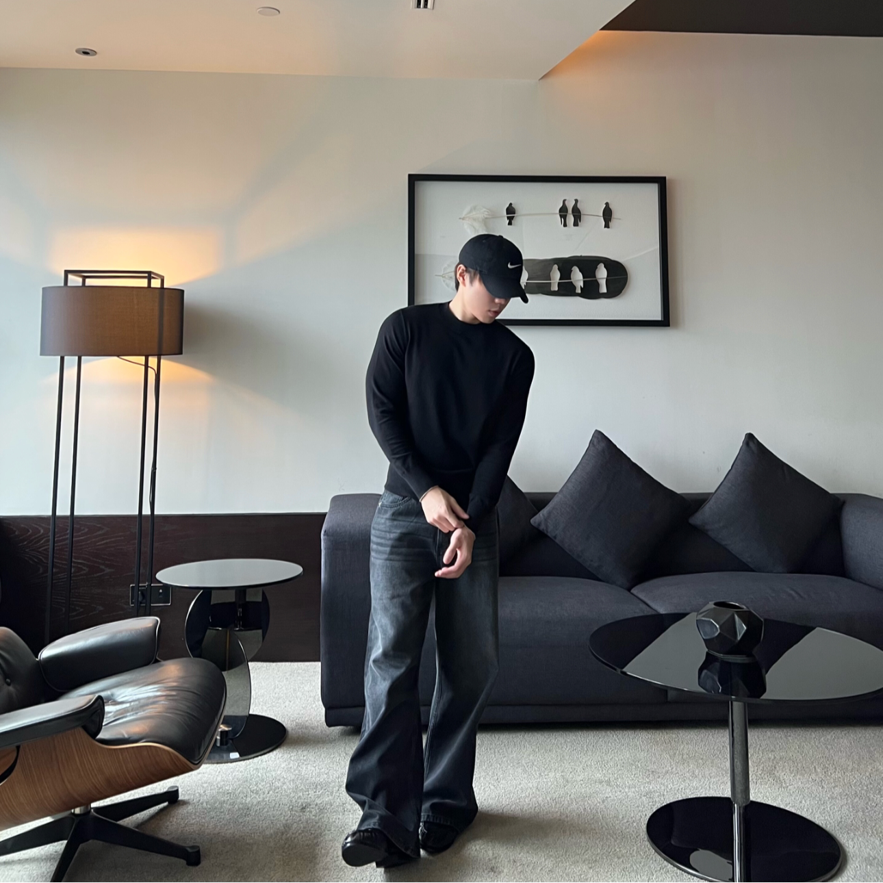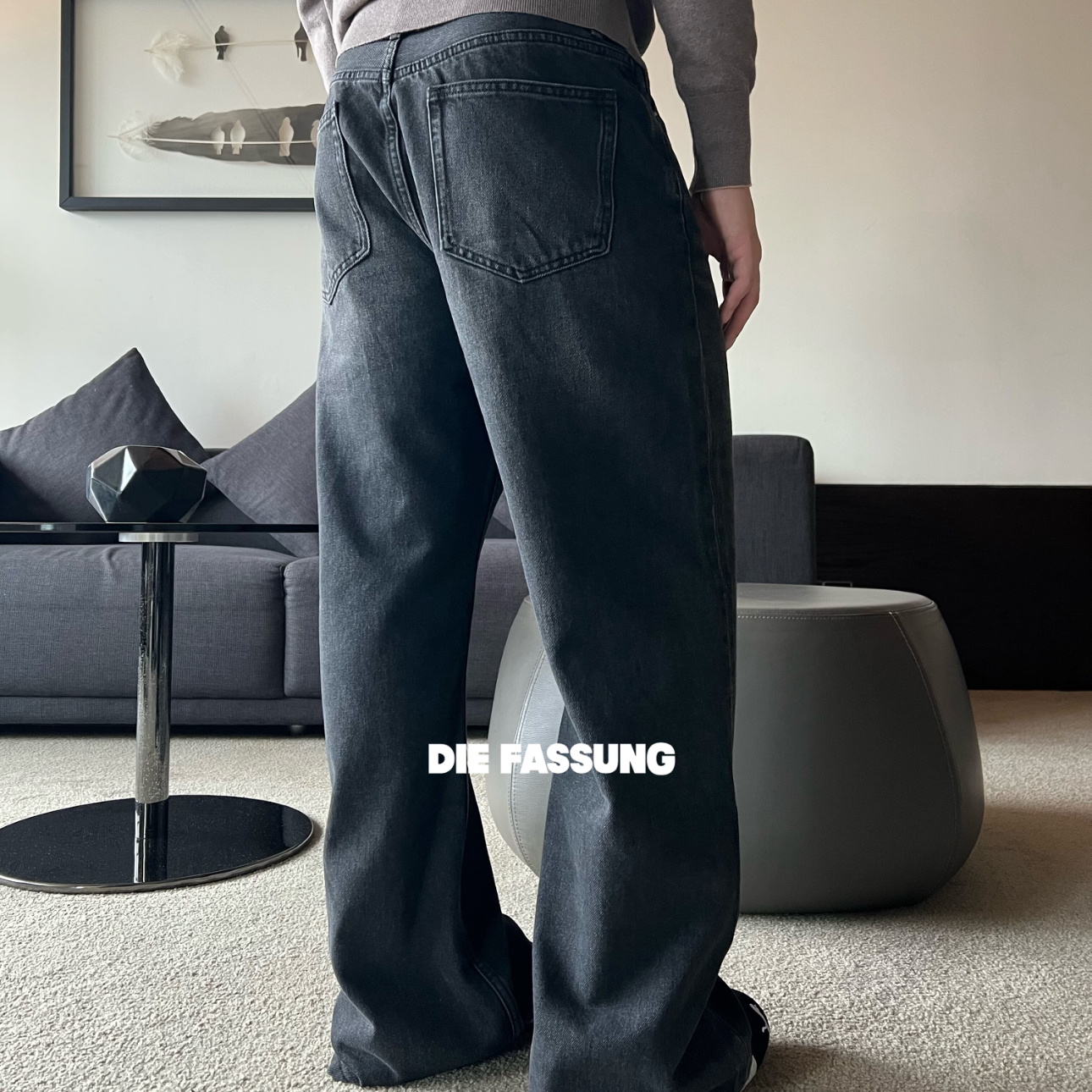 宽松阔腿裤 软糯复古做旧长裤 子 型牛仔裤 DieFassung水洗黑2021M版