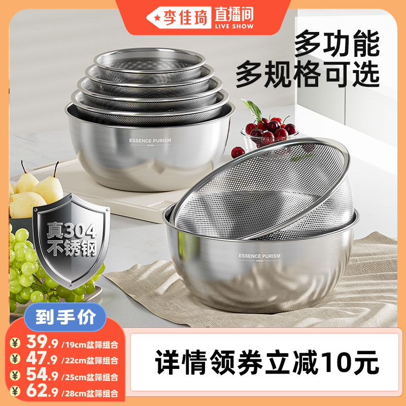 双枪304不锈钢盆洗菜盆沥水篮打蛋和面盆家用厨房新淘米多功能盆