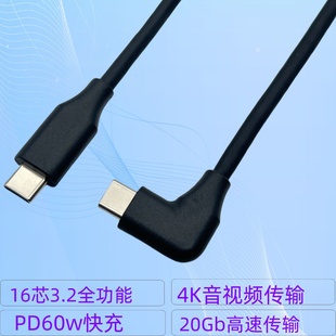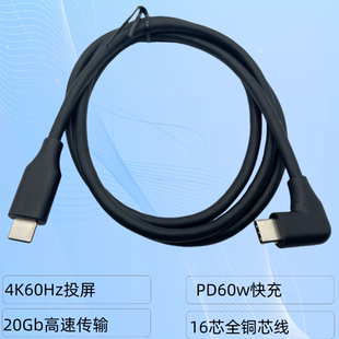 直对弯type c16芯全功能4K视频PD快充20G数据传输全铜硬盘投屏线