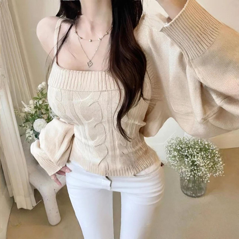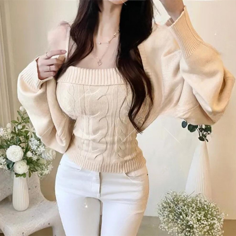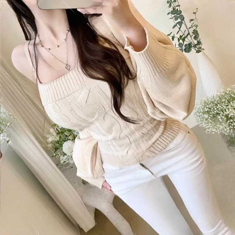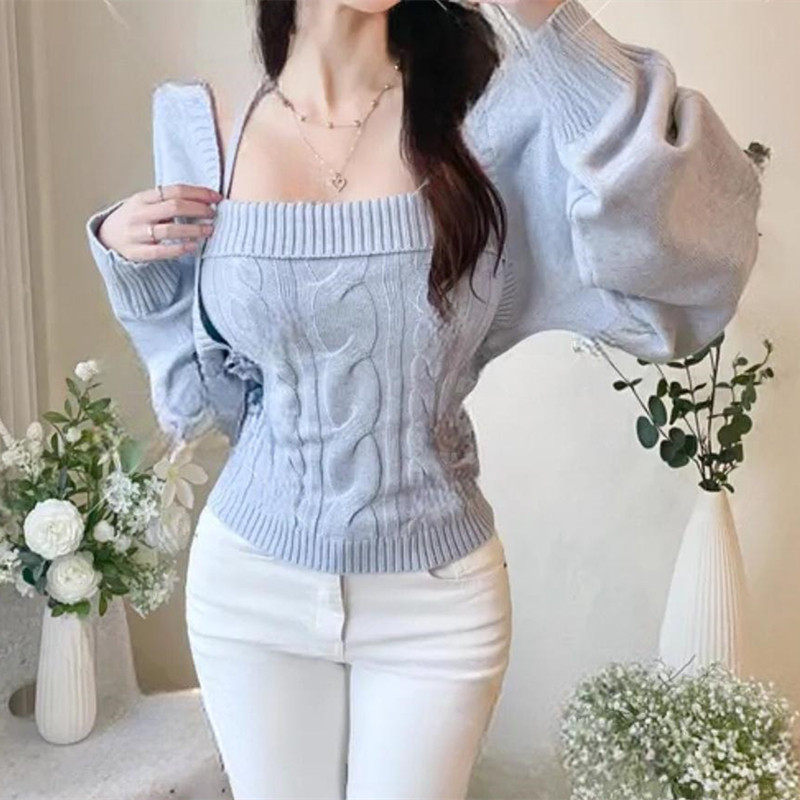 纯欲 开衫 气质修身 长袖 两件套 针织麻花显身材吊带 韩国东大门新款