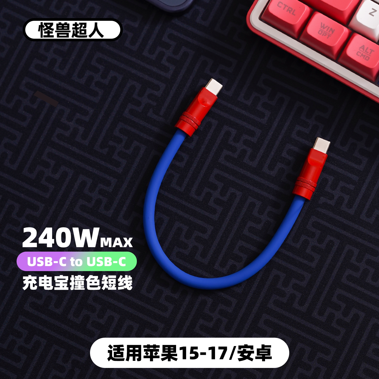 15华为小米短0.2米手机数据线 C充电宝短线20cm适用iPhone17promax充电线typec柔软硅胶苹果16 怪兽超人 USB
