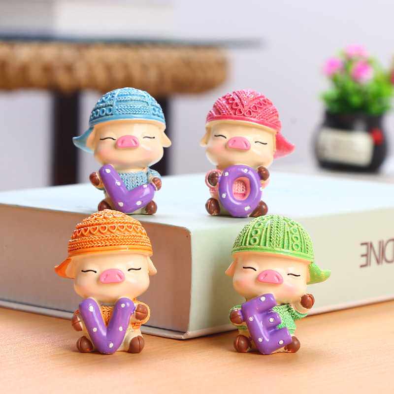 新款 直销创意家居可爱小猪love汽车摆件树脂工艺品一家四口儿童礼