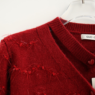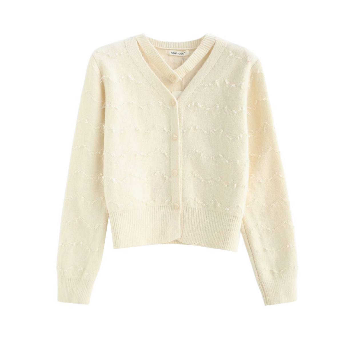 冬装 挂脖V领毛衣开衫 新款 亮丝爱心扣长袖 外套 韩系短款 拾野森