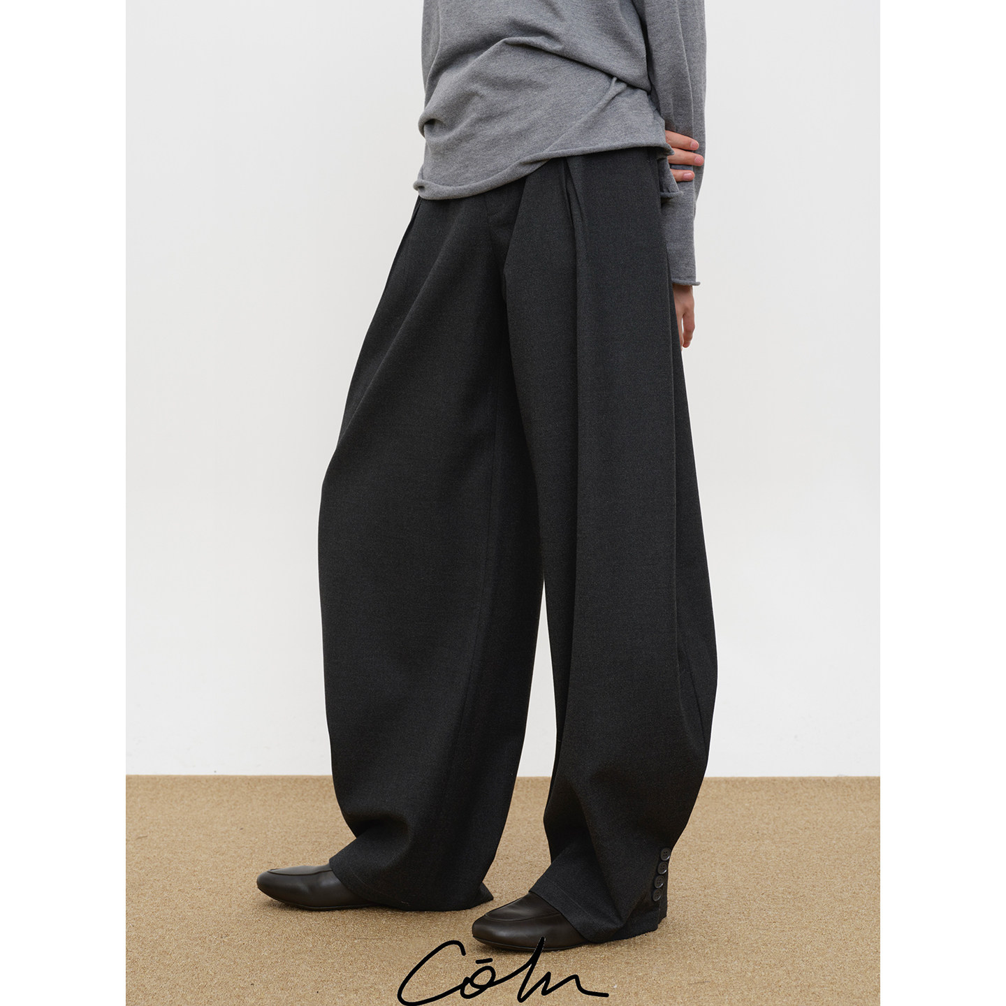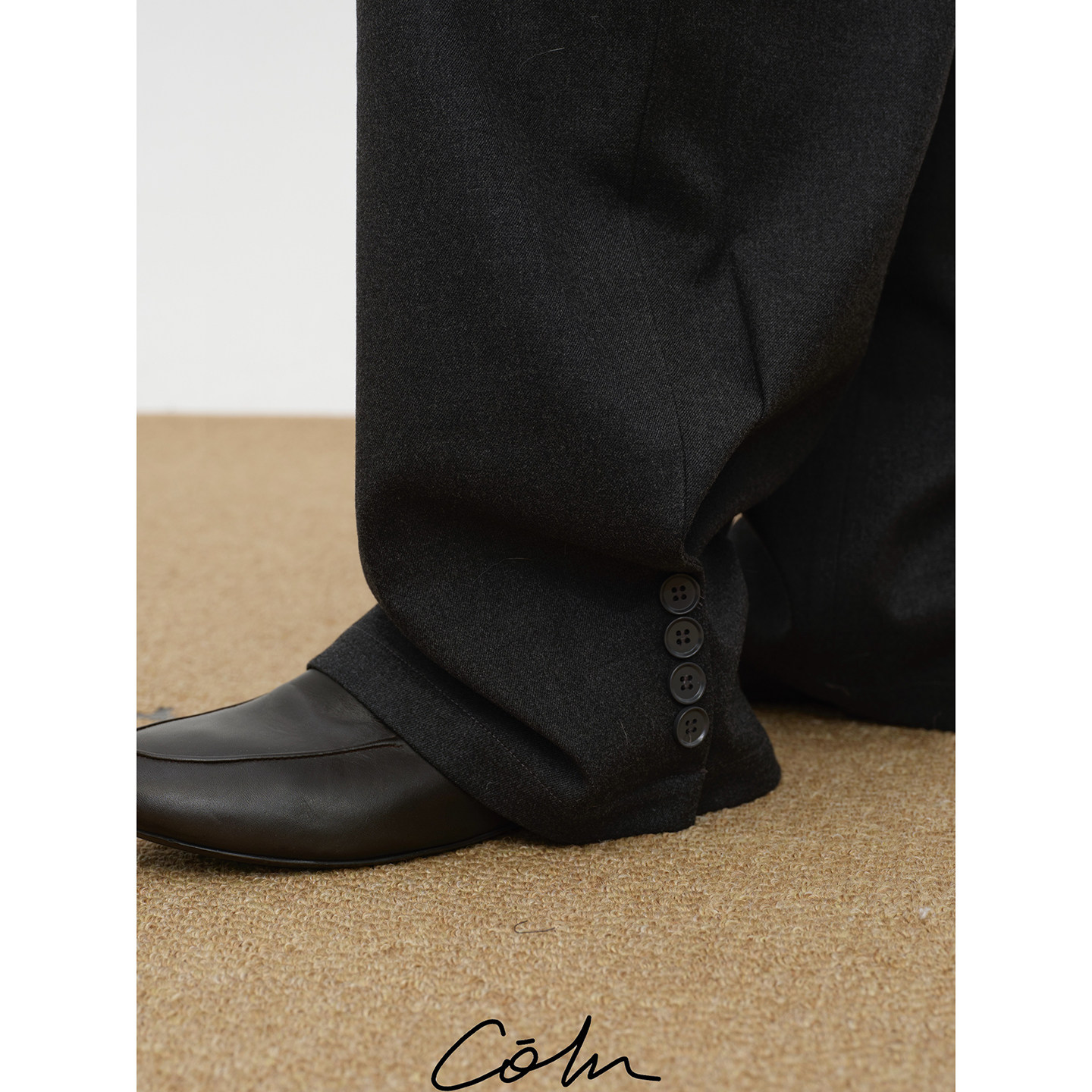 驳领叛逃 肆意成了弯刀裤 纽扣在纽扣西裤 脚登陆 裤 COLN5粒从西装