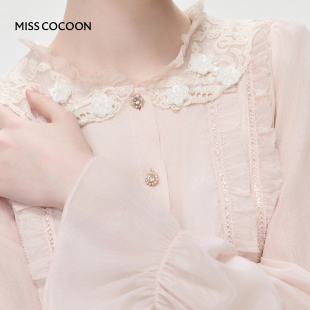 蕾丝木耳边连衣裙 新款 MISSCOCOON可可尼长袖 雪纺百褶裙女2026春季