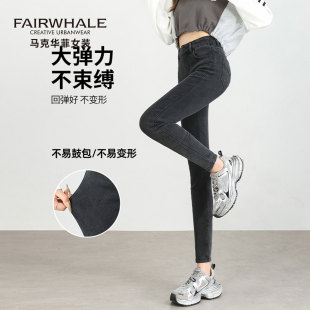 铅笔小脚裤 高腰弹力紧身显瘦修身 子 女2026新款 马克华菲黑色牛仔裤