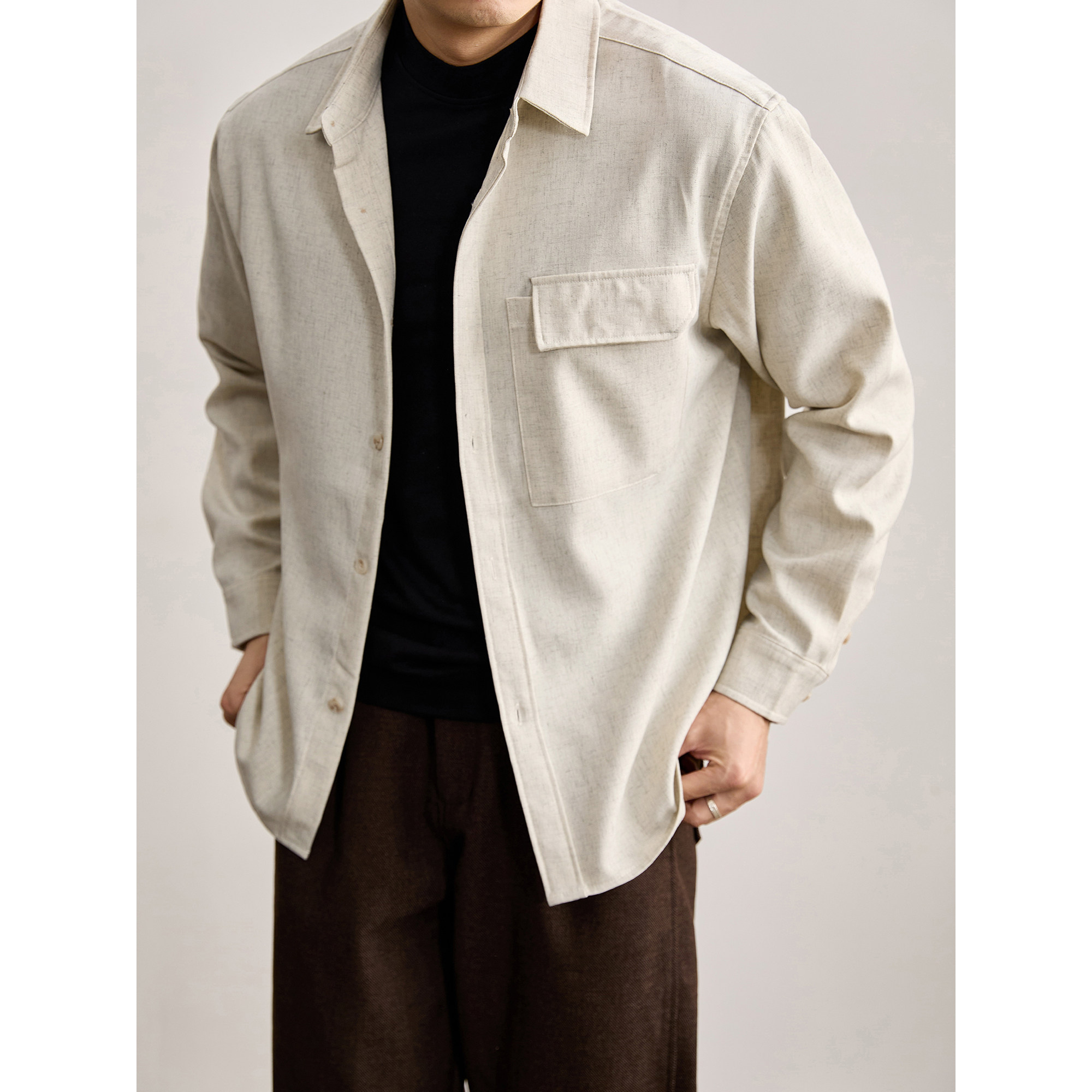 衬衫 老钱风亚麻混纺长袖 男抗皱免烫简约松弛感衬衣外套 法式 LUUD