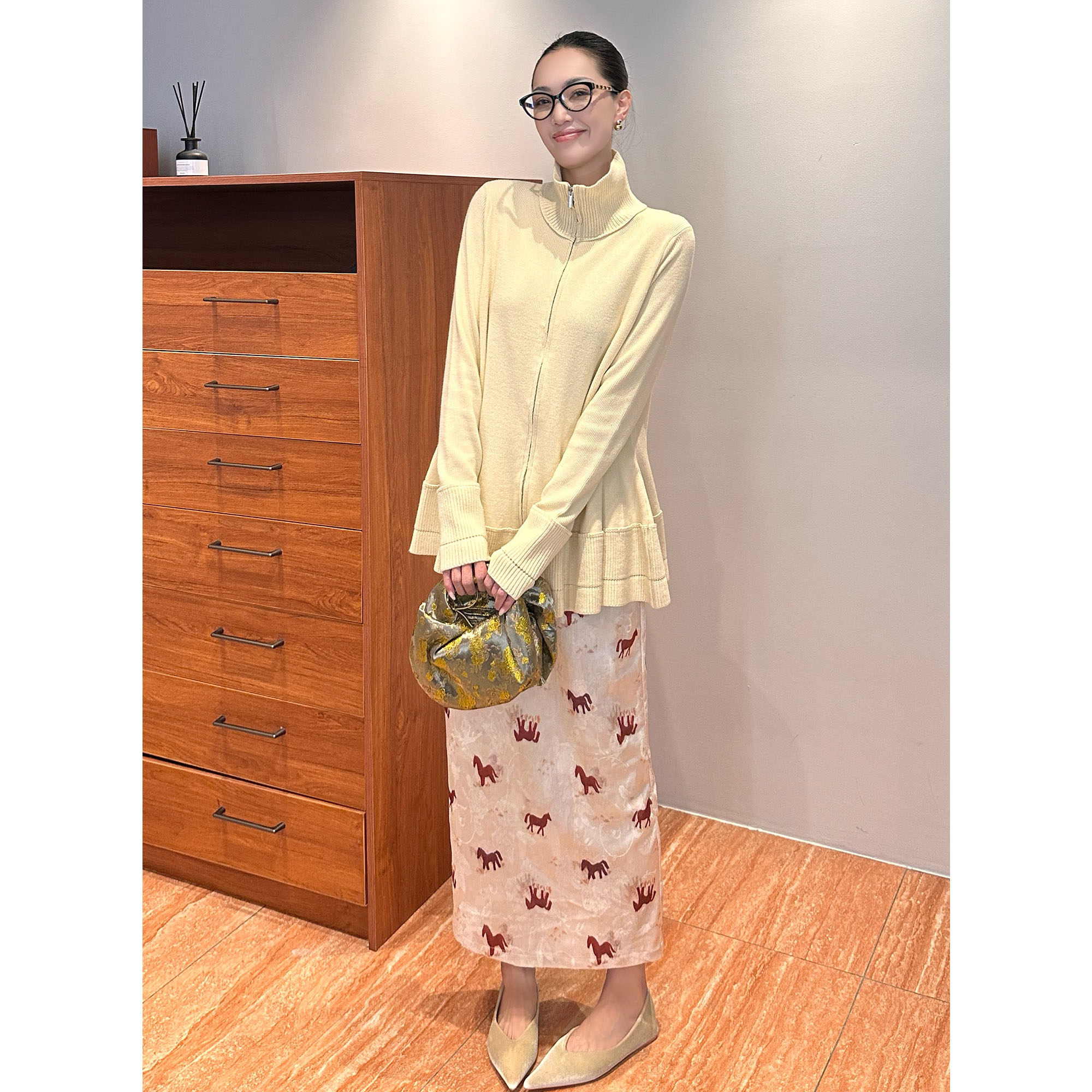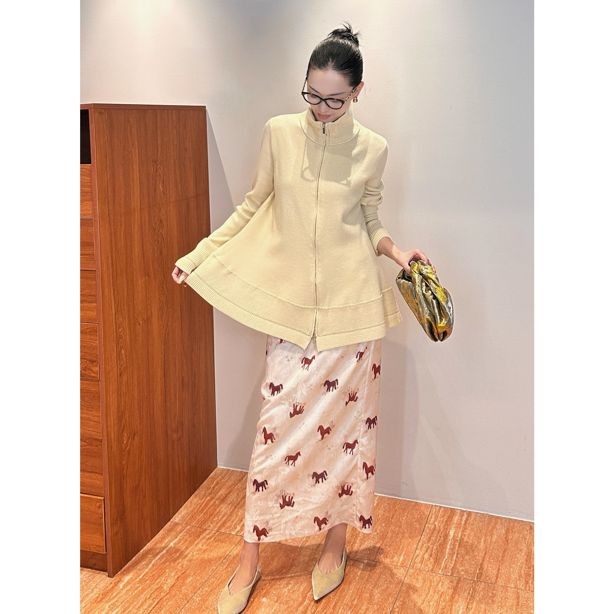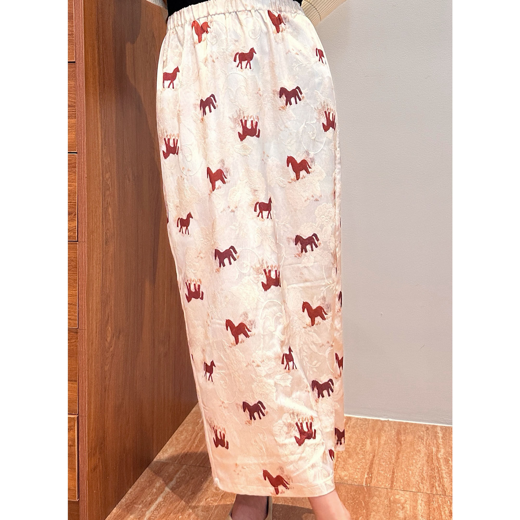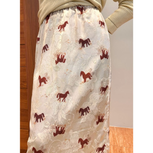 AME 马年礼遇松紧腰赤色红马开叉半身裙包臀小众半裙 赤驹锦绣裙