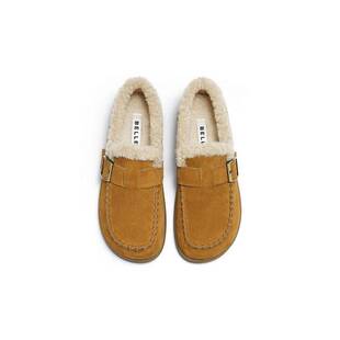 F3W1DAM6 毛毛保暖休闲单鞋 专柜正品 百丽2026冬复古厚底加绒勃肯鞋