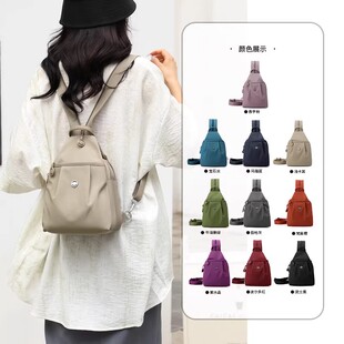双肩包背包女2026时尚 胸包休闲百搭女士双肩背红色牛津布单肩斜跨