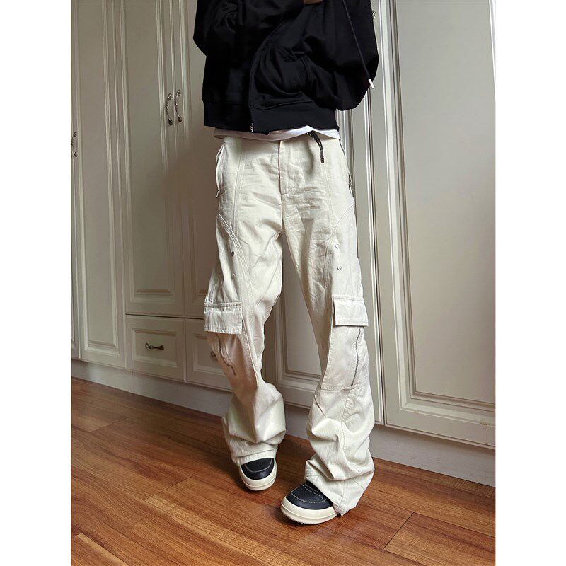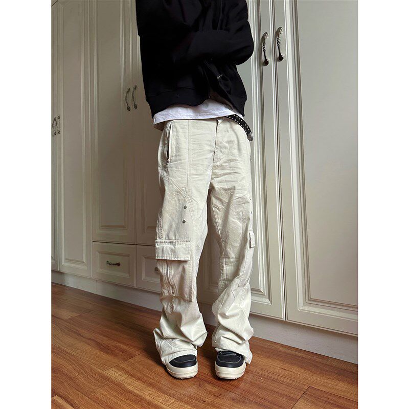 2024米白色工装 国潮直筒休闲裤 多口袋长裤 秋冬新款 子 男女款 F383