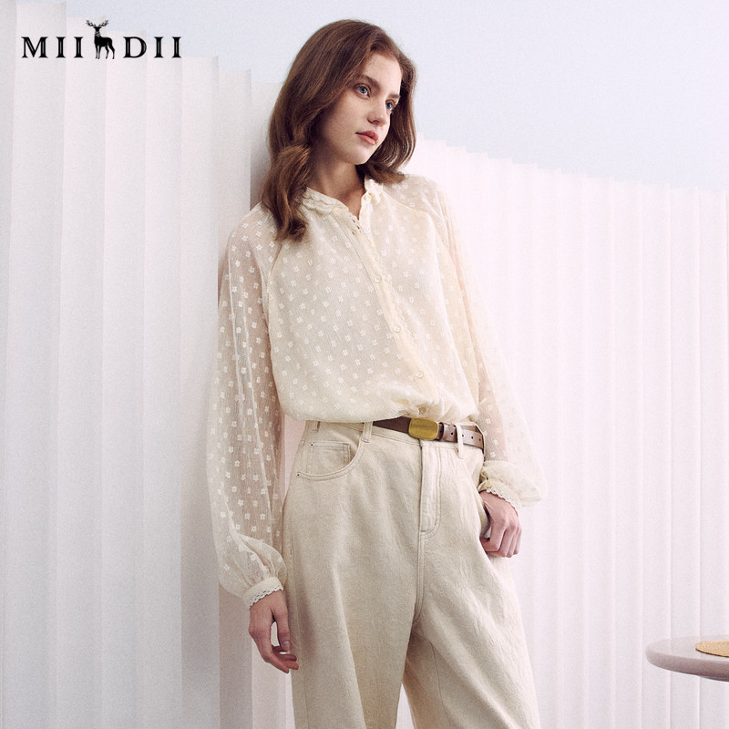 轻盈飘逸垂顺浪漫衬衫 新品 女261MC0210 2026春季 谜底蕾丝衬衣长袖