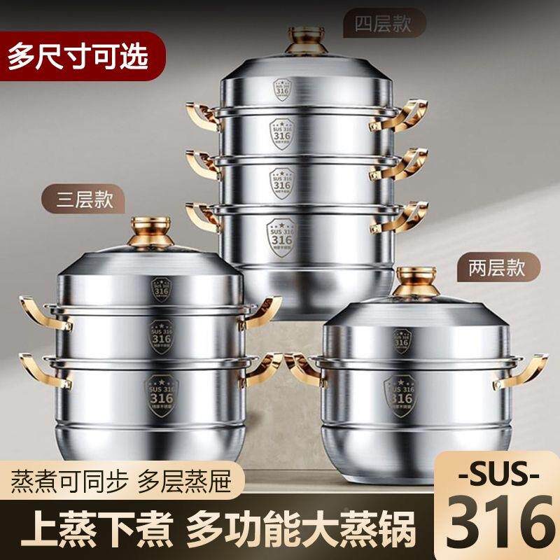 钢大量蒸锅316不锈食容品级WMC家用双层三锅层蒸屉加厚汤蒸馒头蒸