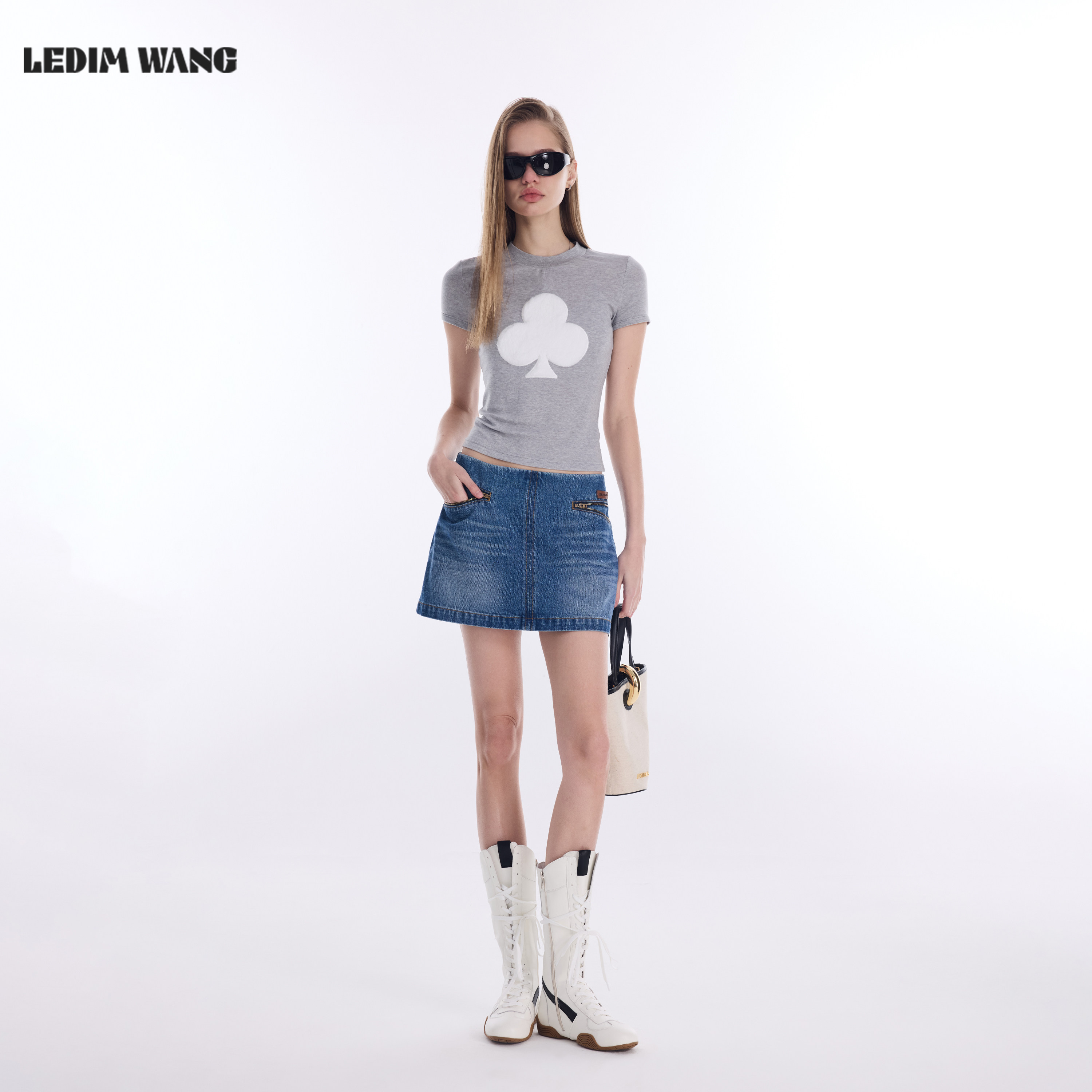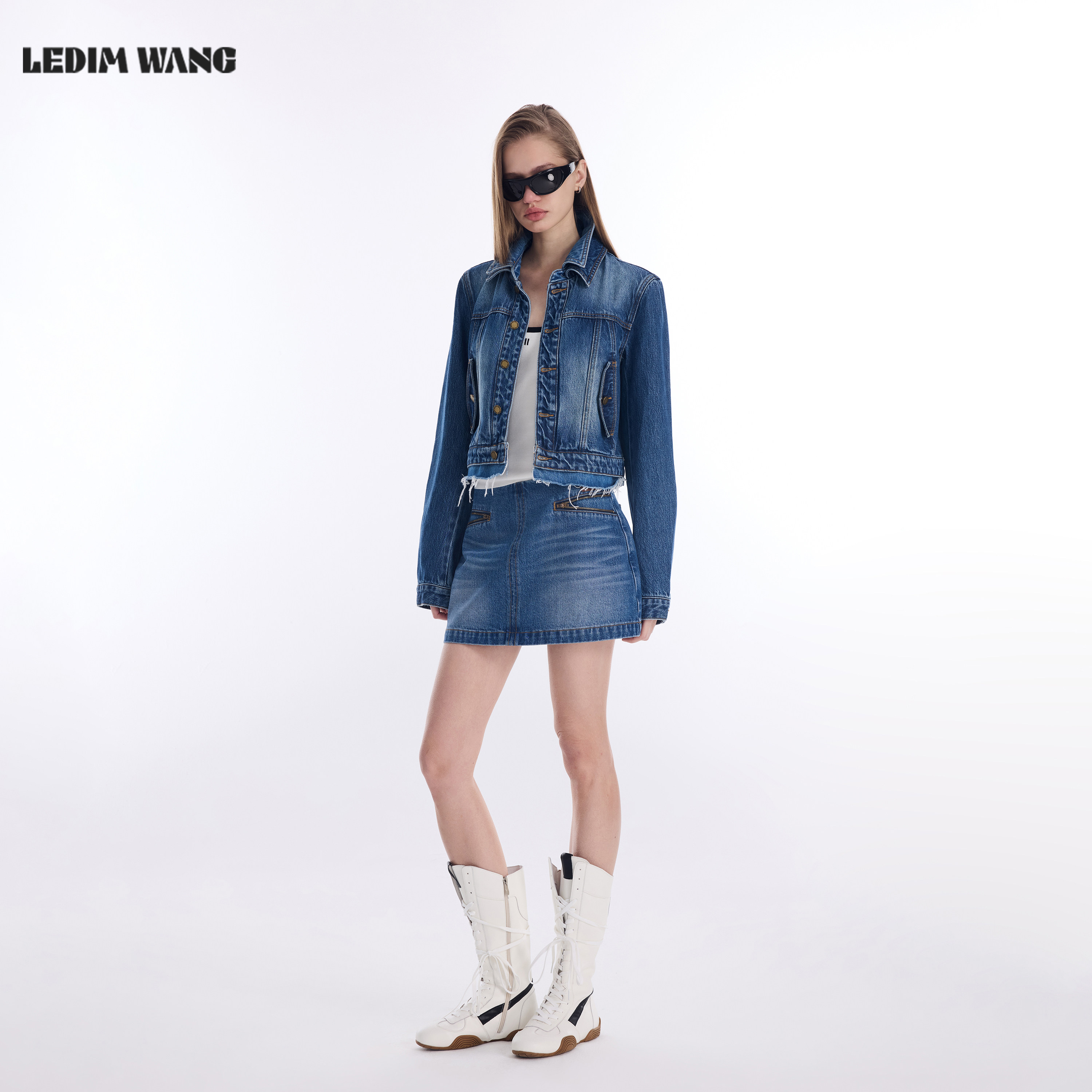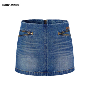 牛仔蓝纯棉修身 新款 短裙 WANGA型拉链牛仔半身裙女2026春季 LEDIM