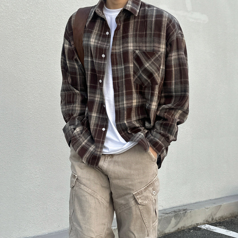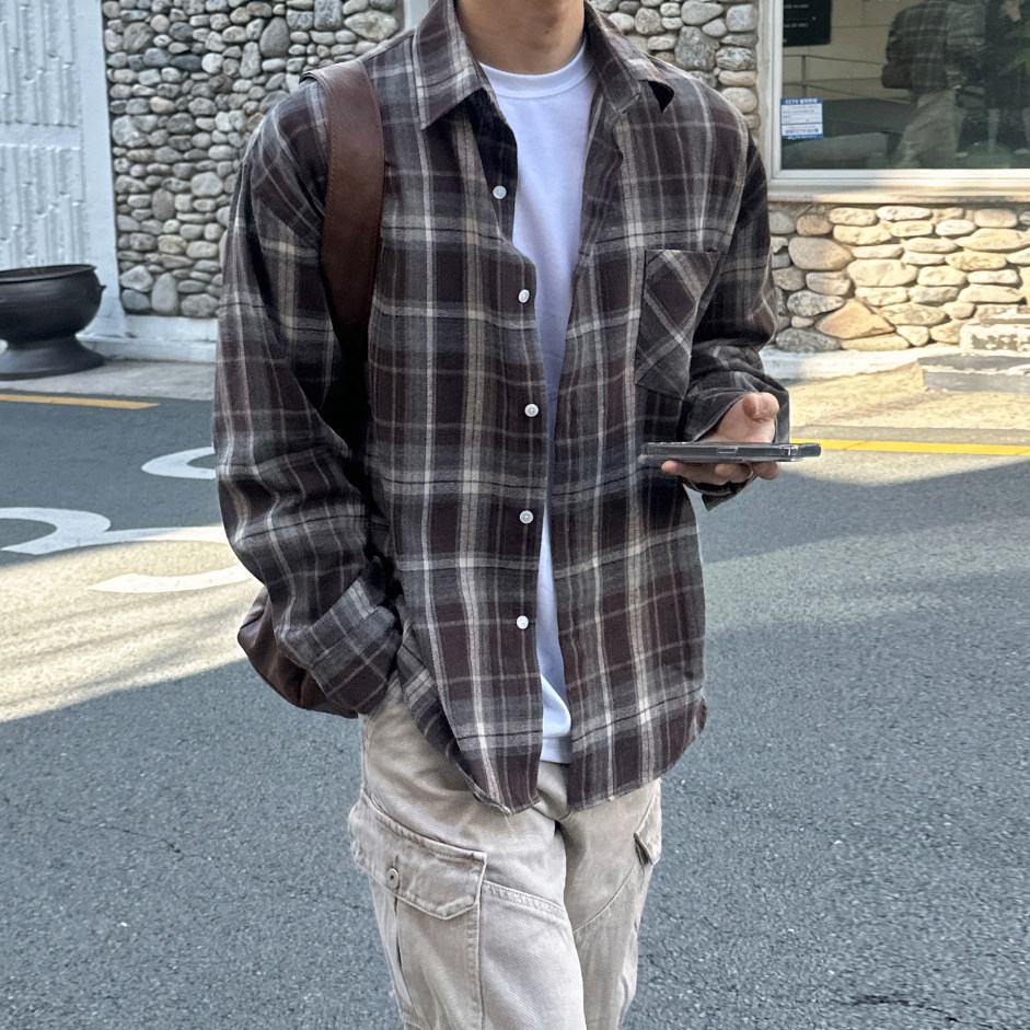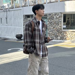 新款 男2026春季 休闲衬衣韩系宽松通勤穿搭 衬衫 MRCYC复古格子长袖
