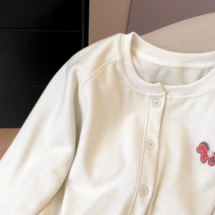 早春宽松单排扣开衫 2026新款 圆领外套 小马刺绣休闲卫衣女款 小C家
