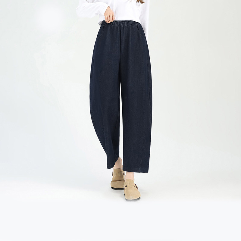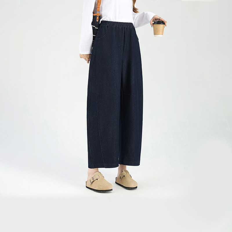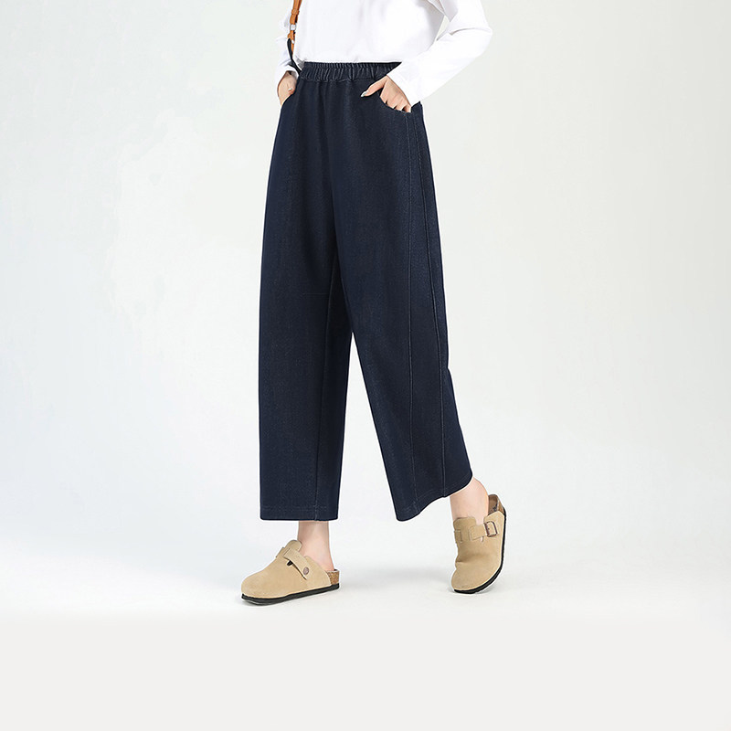 春春复古仿牛仔亲肤九分裤 热风女士时尚 文艺风宽松阔腿萝卜裤