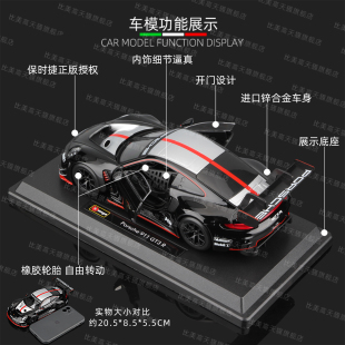 R汽车模型仿真跑车合金车模 比美高新款 GT3 24保时捷911 蛙王