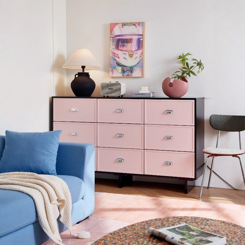 全友家居奶油原木风储物九斗柜客厅靠墙沙发旁边柜卧室床尾抽屉柜