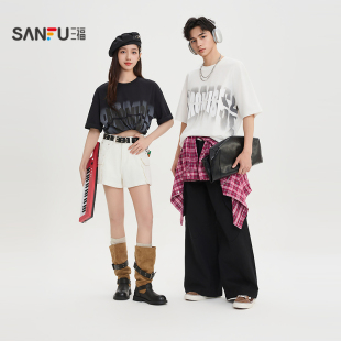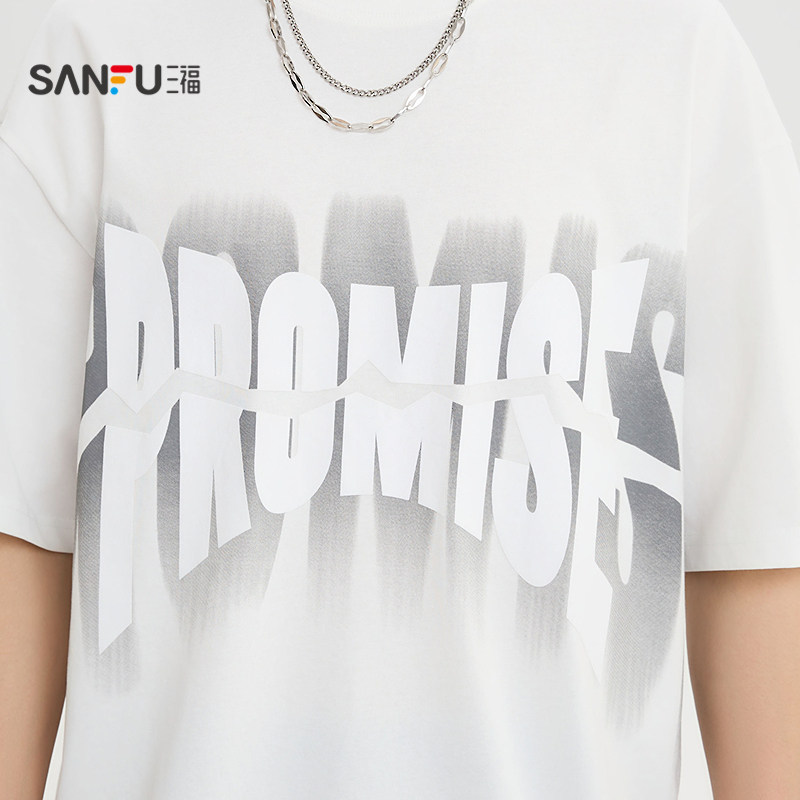 宽松打底衫 三福2026夏季 t恤男网眼英文印花休闲圆领半袖 短袖 新款