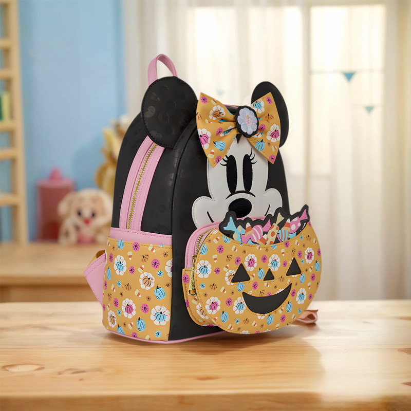 Loungefly迪士尼米妮米老鼠正版 周边南瓜糖碗造型夜光双肩包背包
