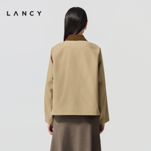 巴恩风灯芯绒拼接翻领短款 新款 小个子风衣外套 朗姿2026春季 LANCY