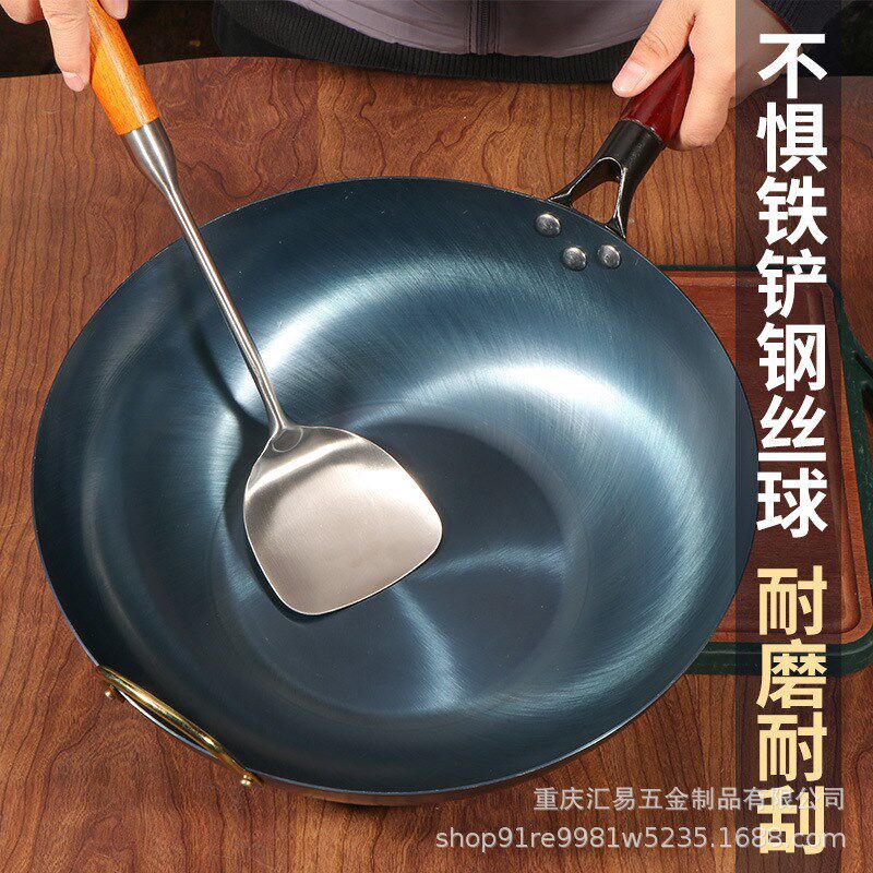 传统老式 家用平底铁锅不粘锅炒锅开好锅无涂层炒菜锅炒鍋免开锅