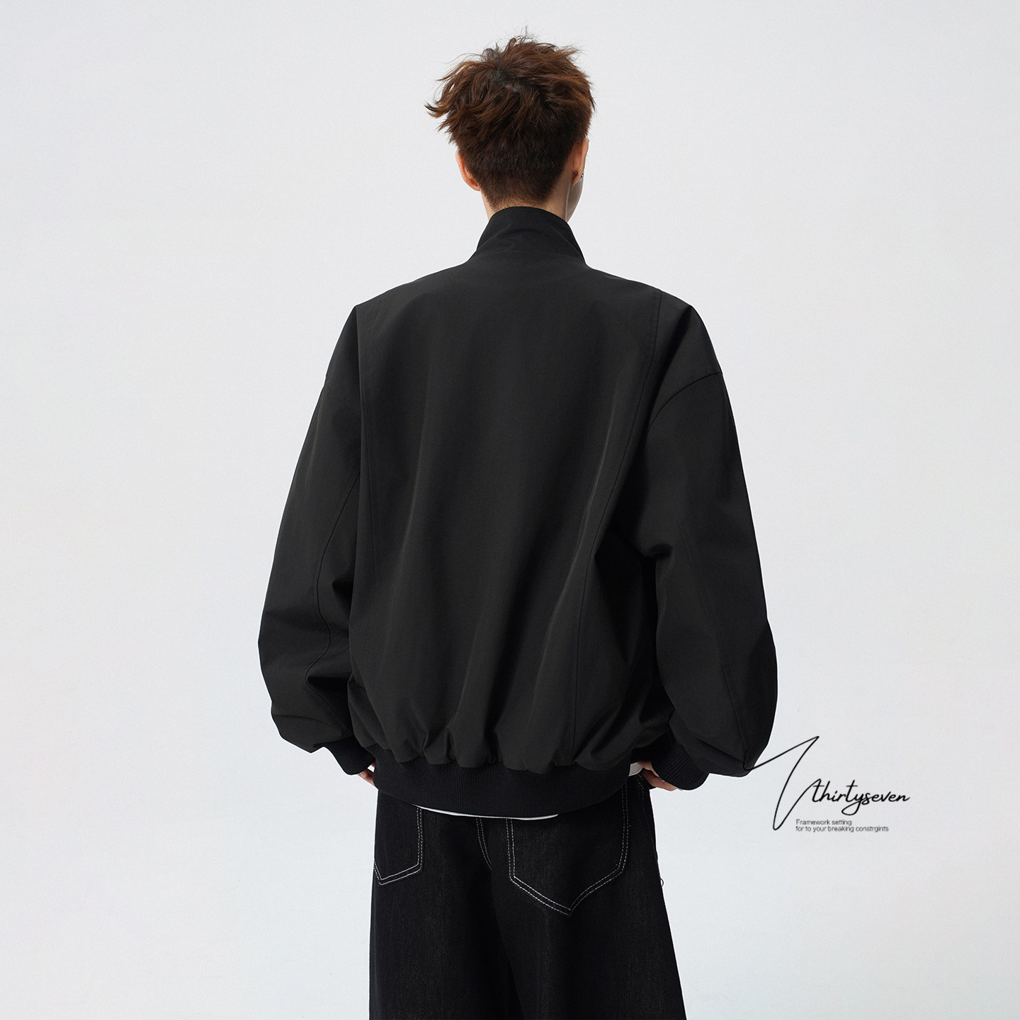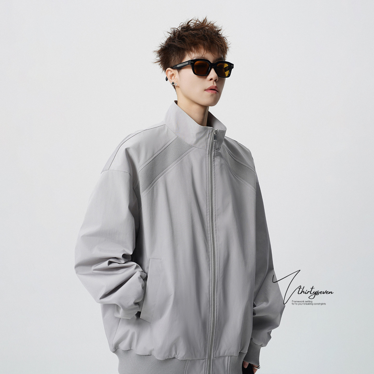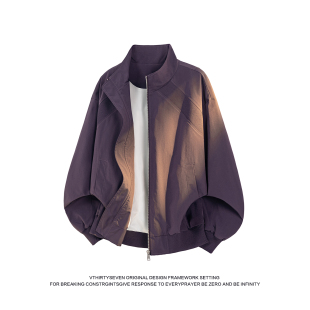 V37美式 高级感紫色宽松拉链外套 潮牌解构拼接立领飞行夹克男春季
