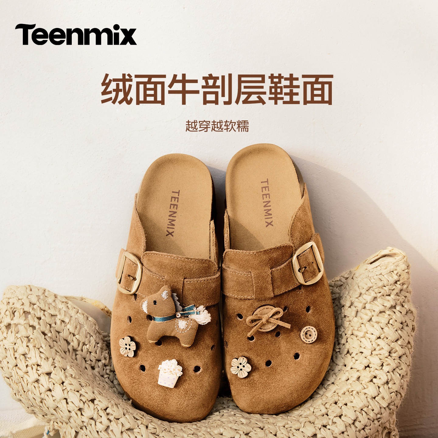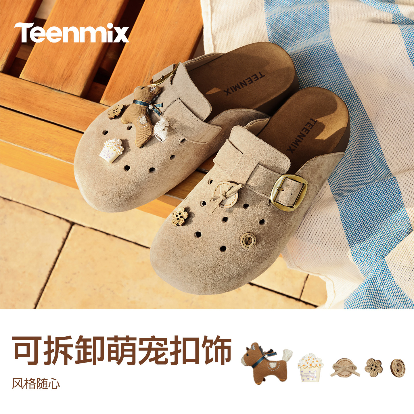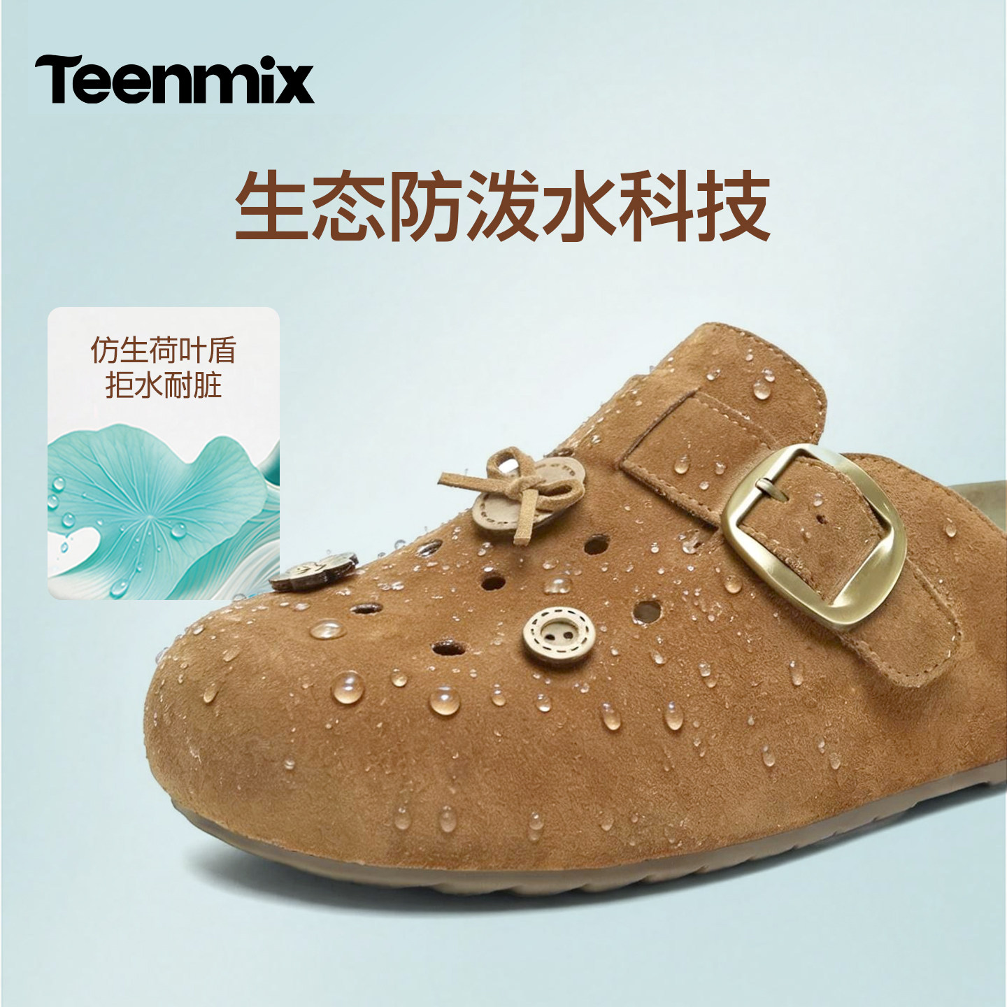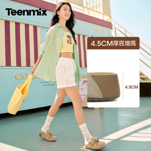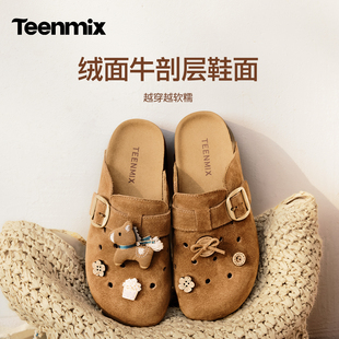 2026夏新款 女外穿休闲凉拖鞋 厚底洞洞包头半拖鞋 天美意萌宠勃肯鞋