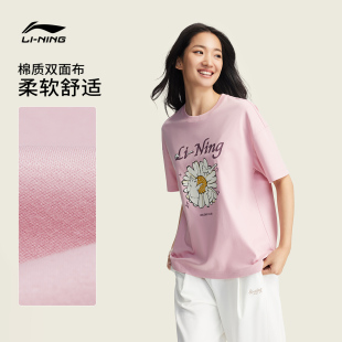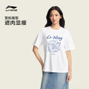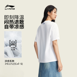 白色上衣针织运动T恤 圆领印花半袖 李宁冰丝短袖 女士春夏2026新款