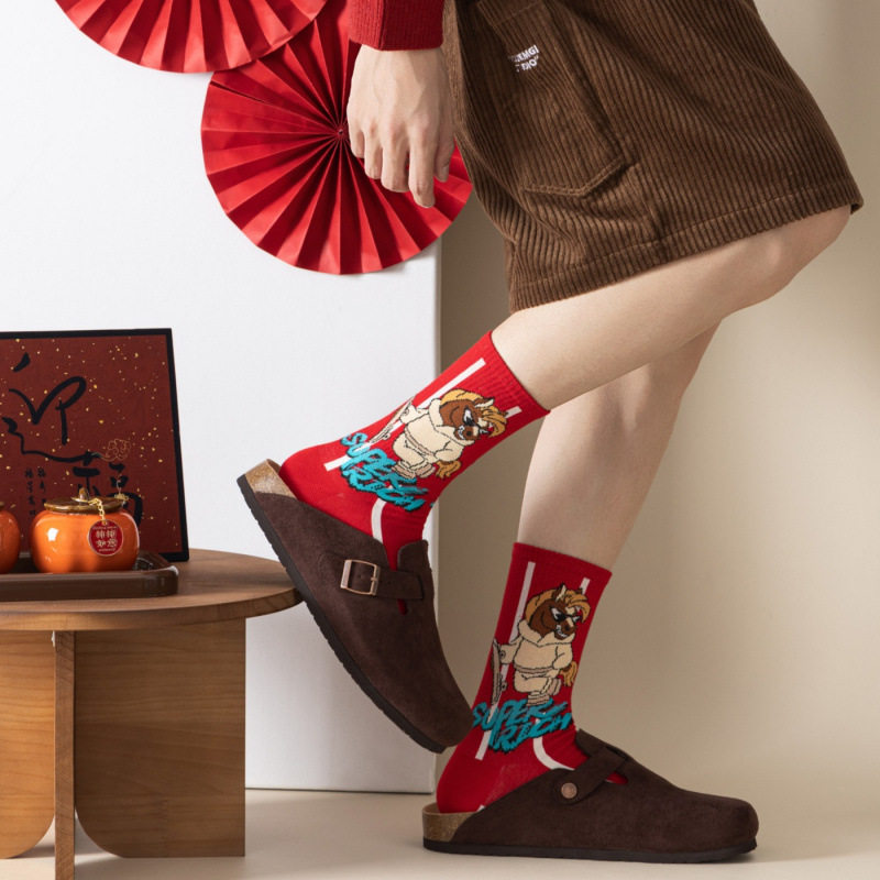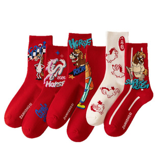 马年本命年男士 红袜子纯棉女士大红色中筒袜秋冬情侣全棉短袜礼物