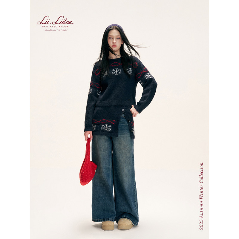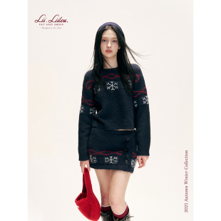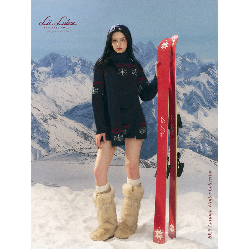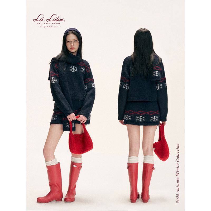 菱格雪花提花针织毛衣围巾包臀裙套装 Liilou 羊毛混纺 Isle Fair
