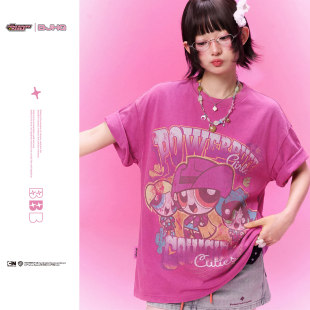 女款 BJHG不计后果复古T恤短袖 夏宽松纯棉上衣 飞天小女警联名