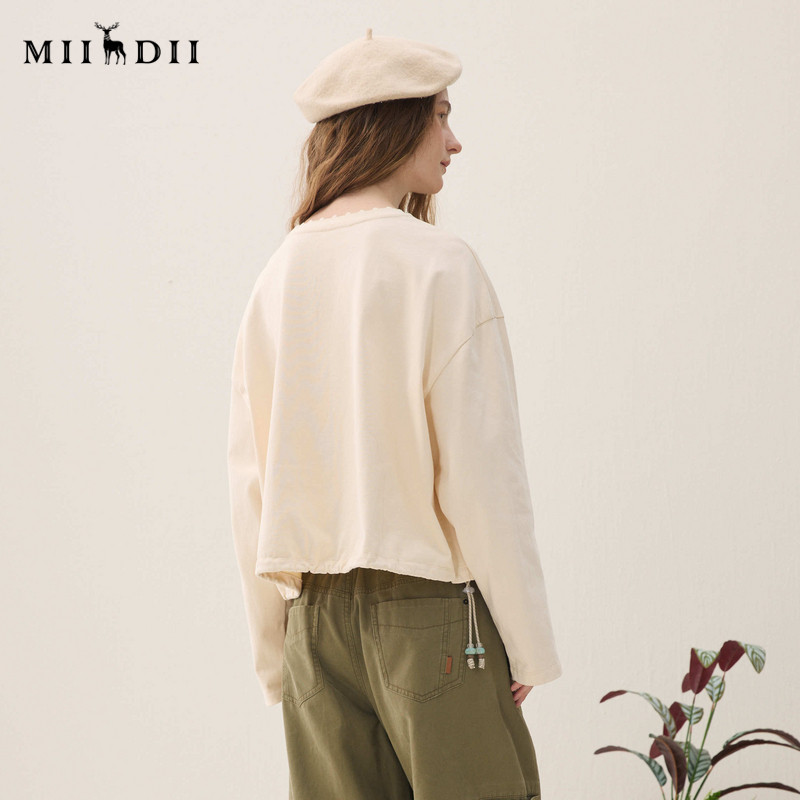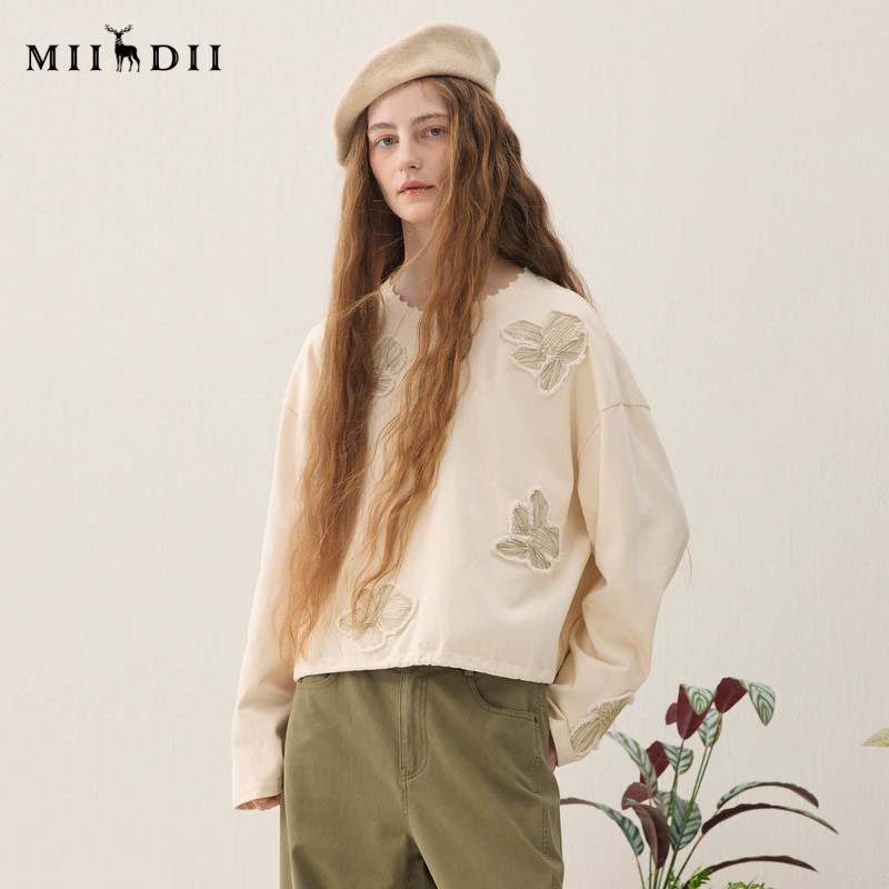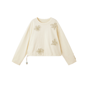 浪漫绣花串珠抽绳松弛女261MV0004 新品 谜底圆领卫衣长袖 2026春季