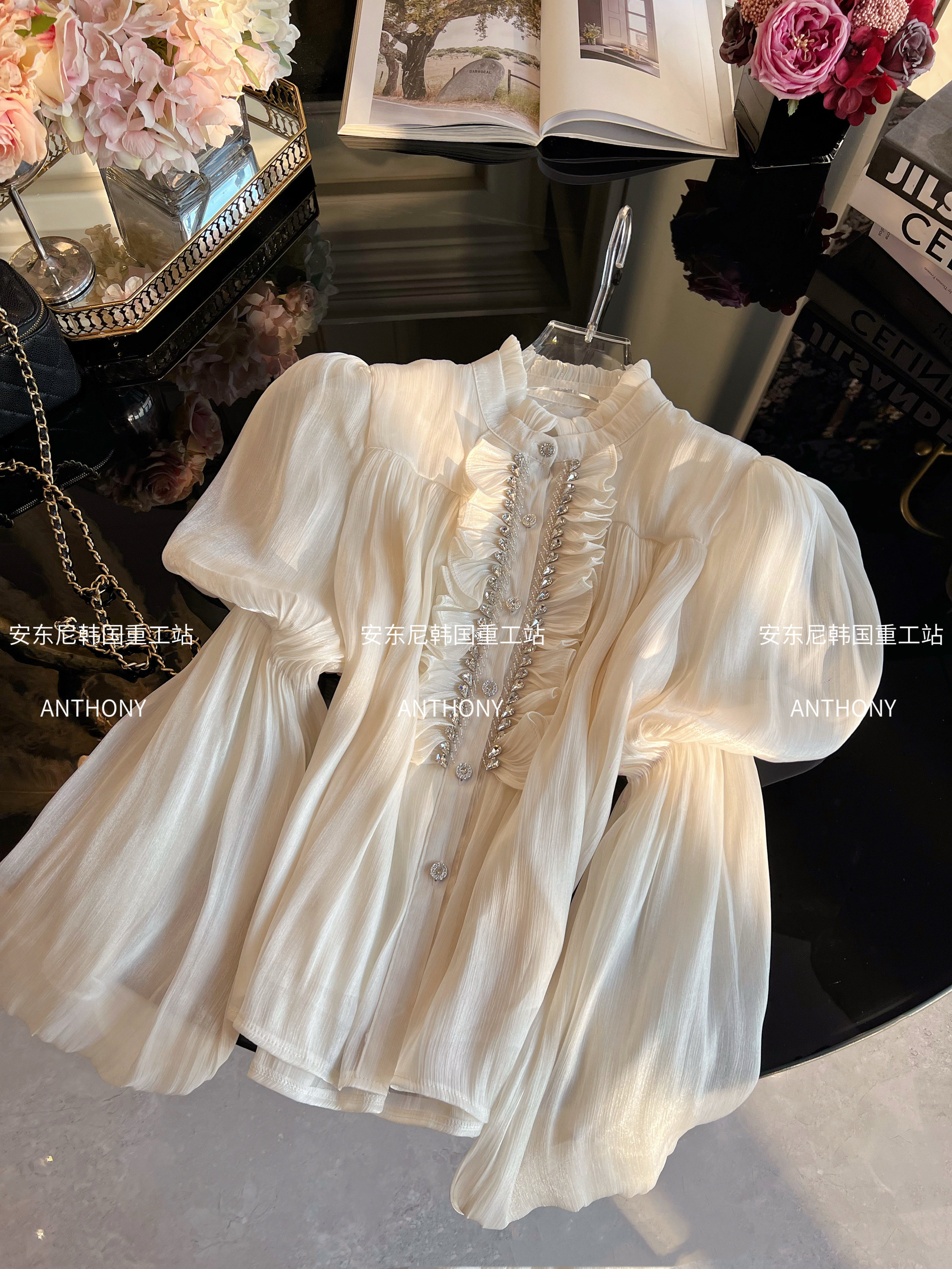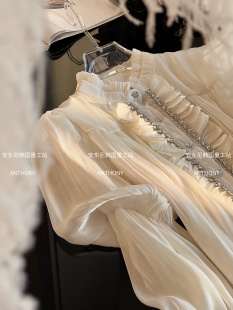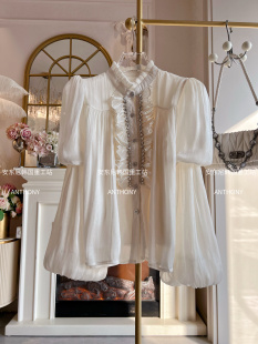 宫廷风雪纺衫 重工镶钻灯笼袖 衬衫 2026年春季 宽松显瘦衬衣 女装 法式