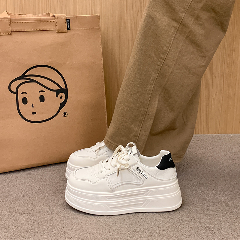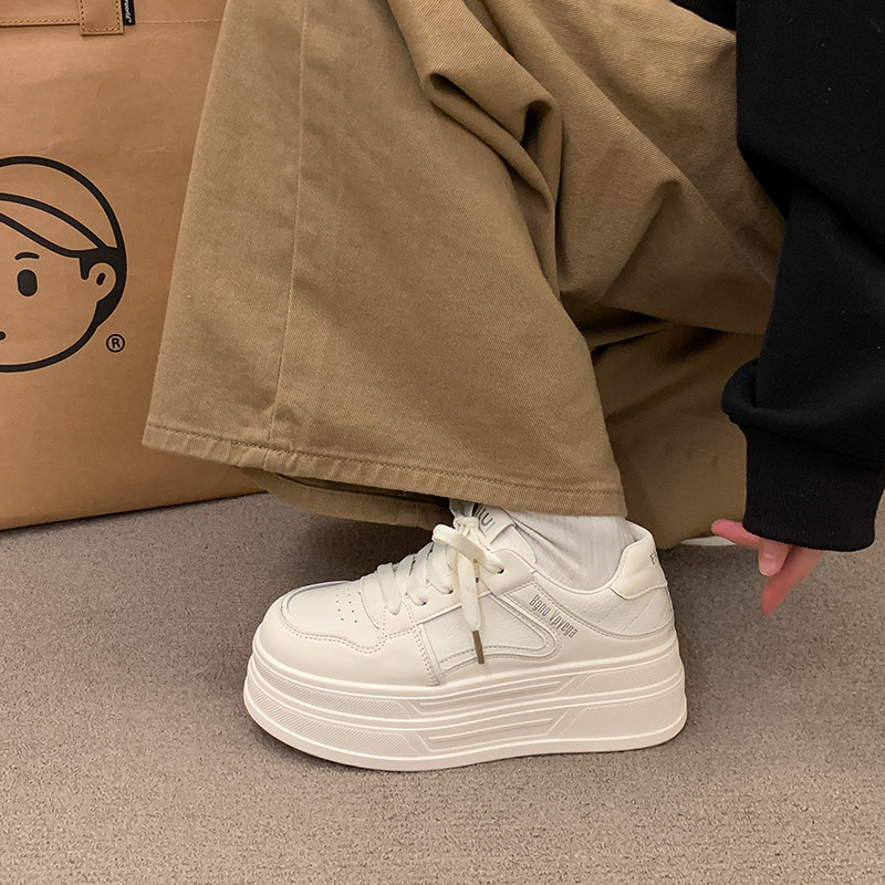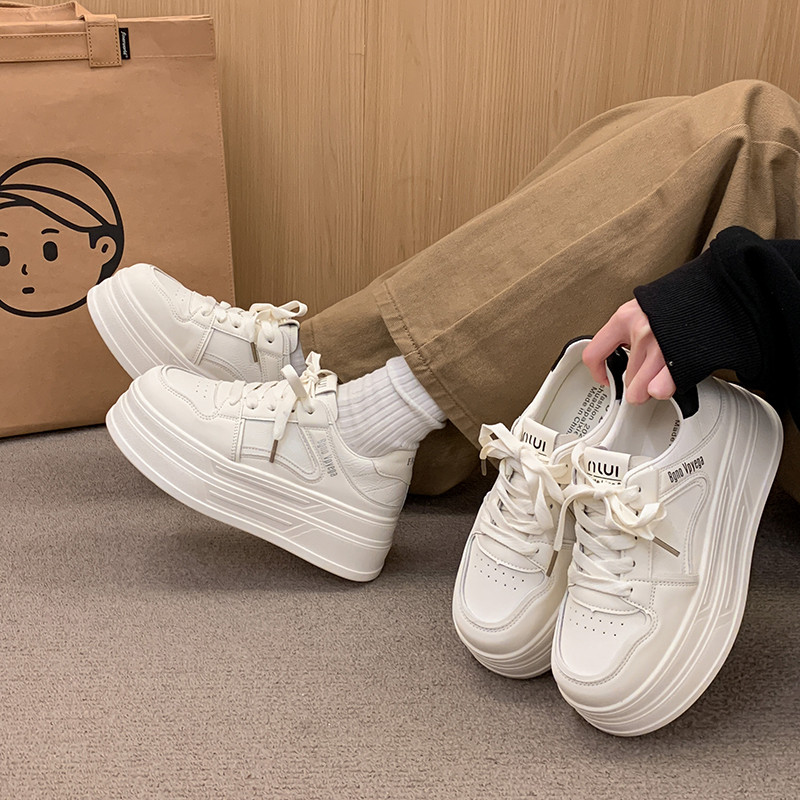 软底运动板鞋 百搭小个子增高7CM厚底小白鞋 34小码 新款 女2026春季