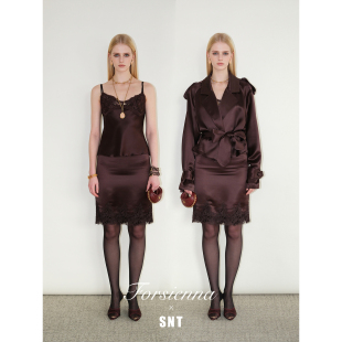 半裙 SNT 蕾丝拼接醋酸吊带 妩媚迷人咖啡紫 风衣 权威轻熟姐感