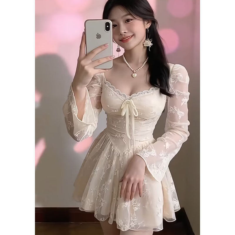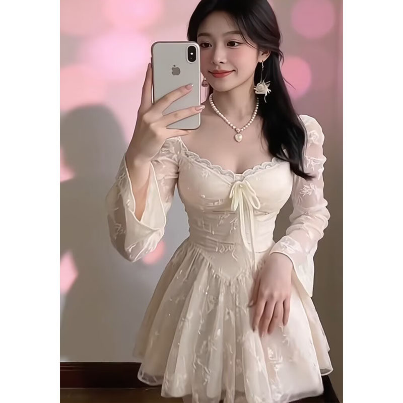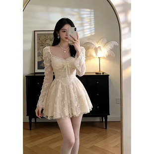 法式 收腰显瘦蕾丝蓬蓬短裙子高级感连衣裙女 温柔风巨好看2026春季