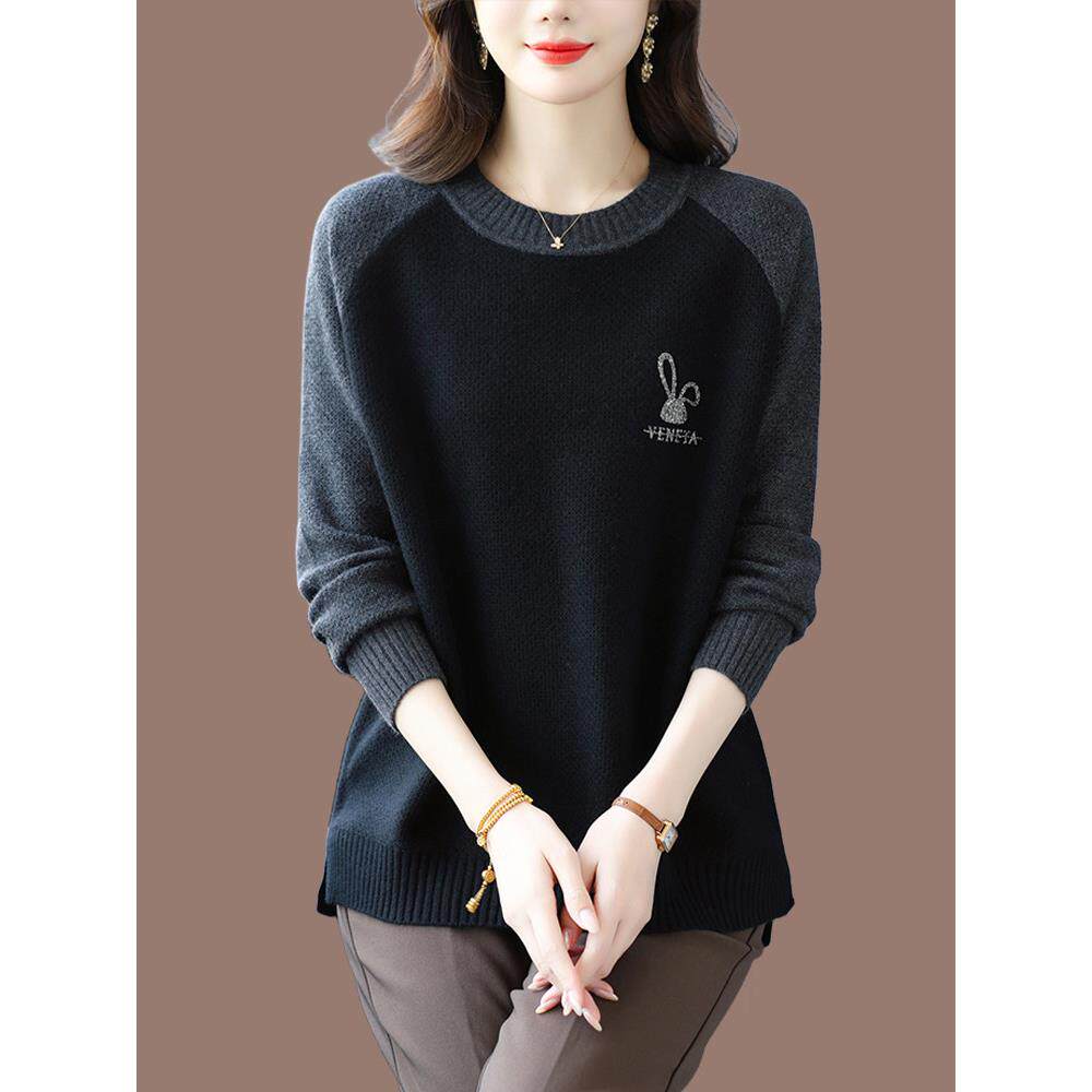 胖mm遮肚子显瘦针织打底衫 毛衣女秋冬季 显瘦 宽松羊毛衫 加肥加大码