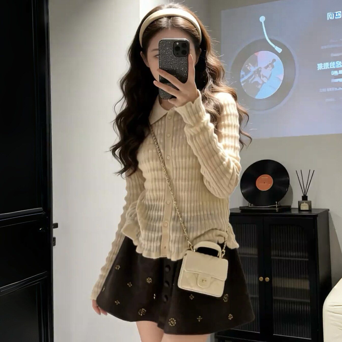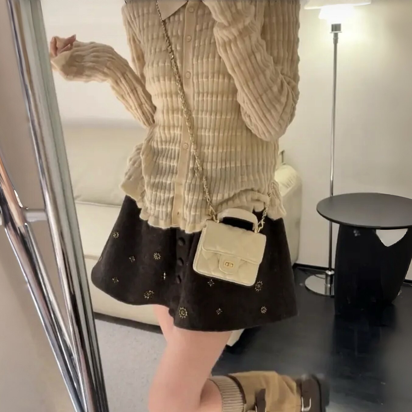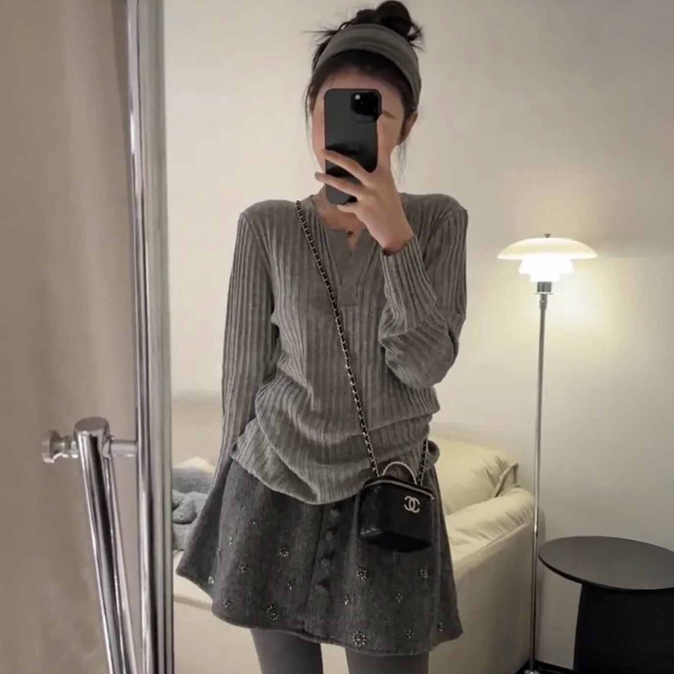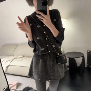 韩系绝美灰色高腰毛呢碎花半身裙女早春小个子显瘦A字伞裙短裙潮
